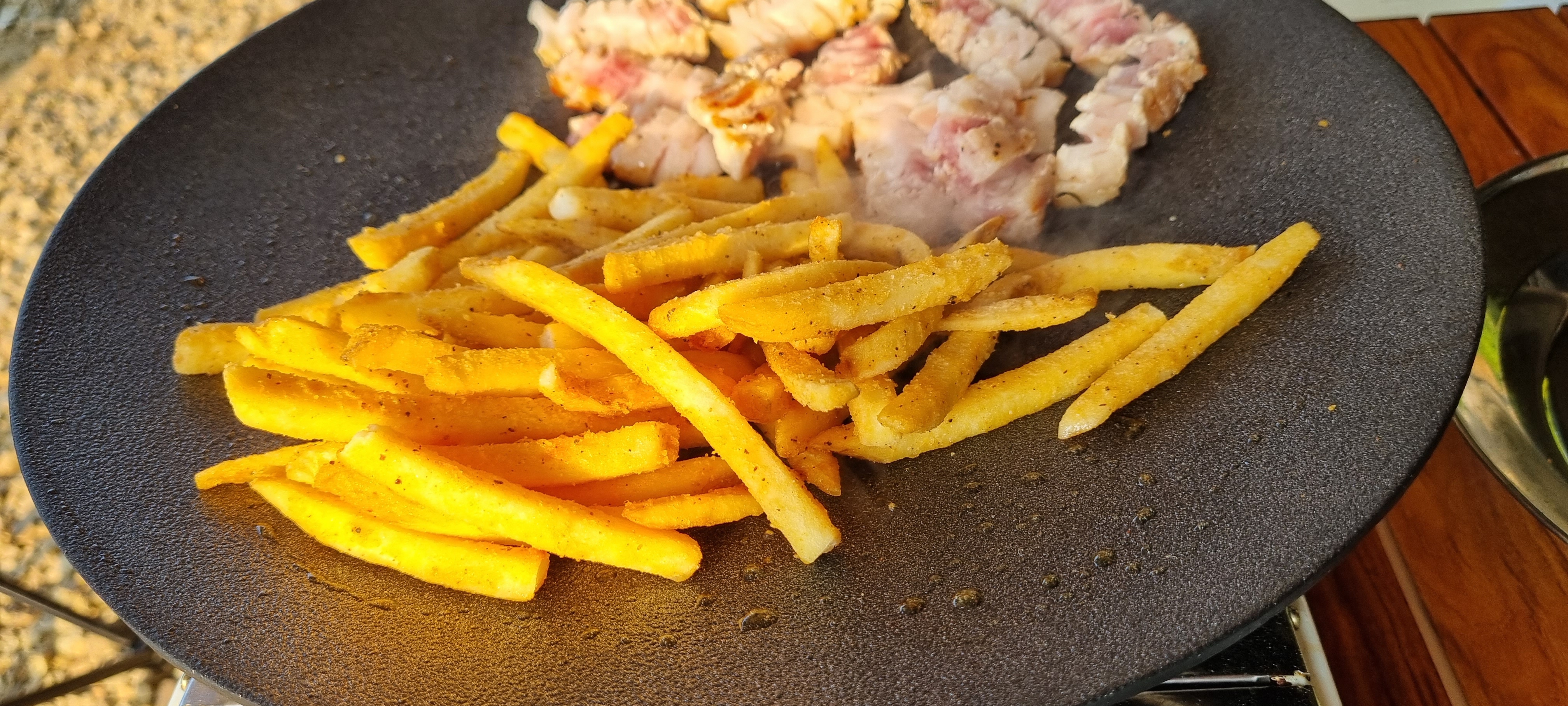 다 그리들 하나로 ㅋㅋ 열악하지만 그게 캠핑요리의 매력이겠죠?
