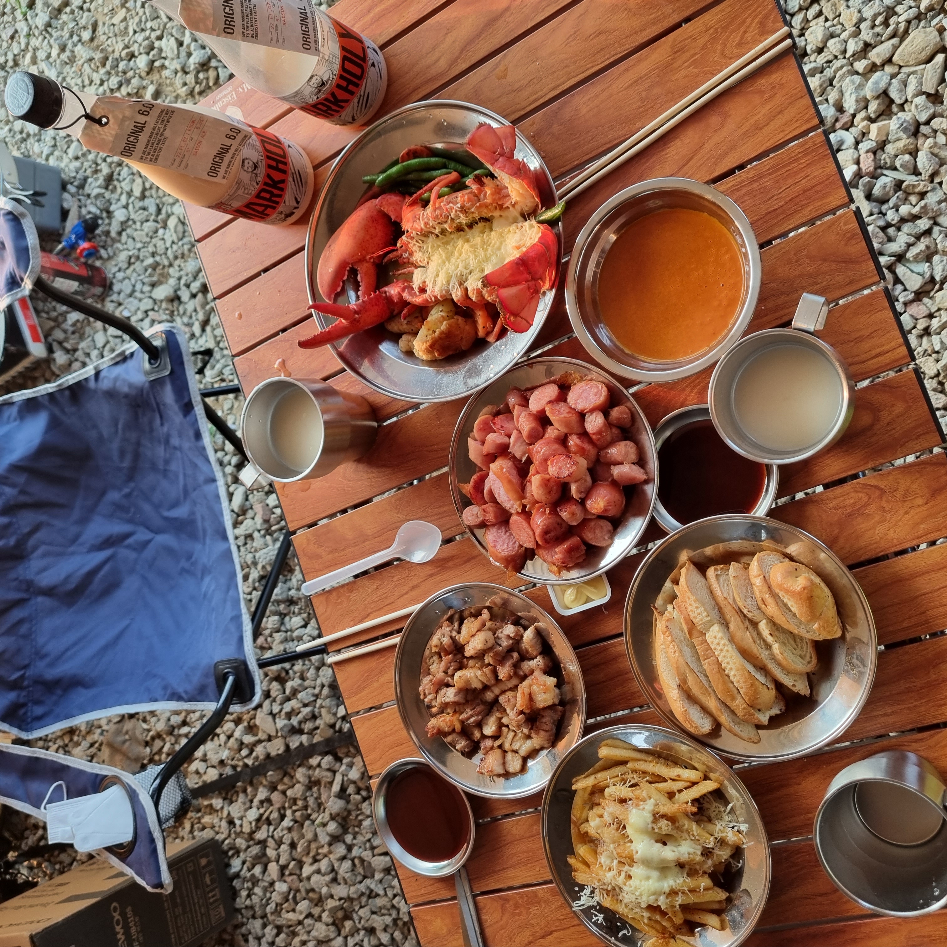 이렇게 요리한 메뉴들 세팅하면 캠핑장에서의 완벽 생일상 완성이랍니다:)