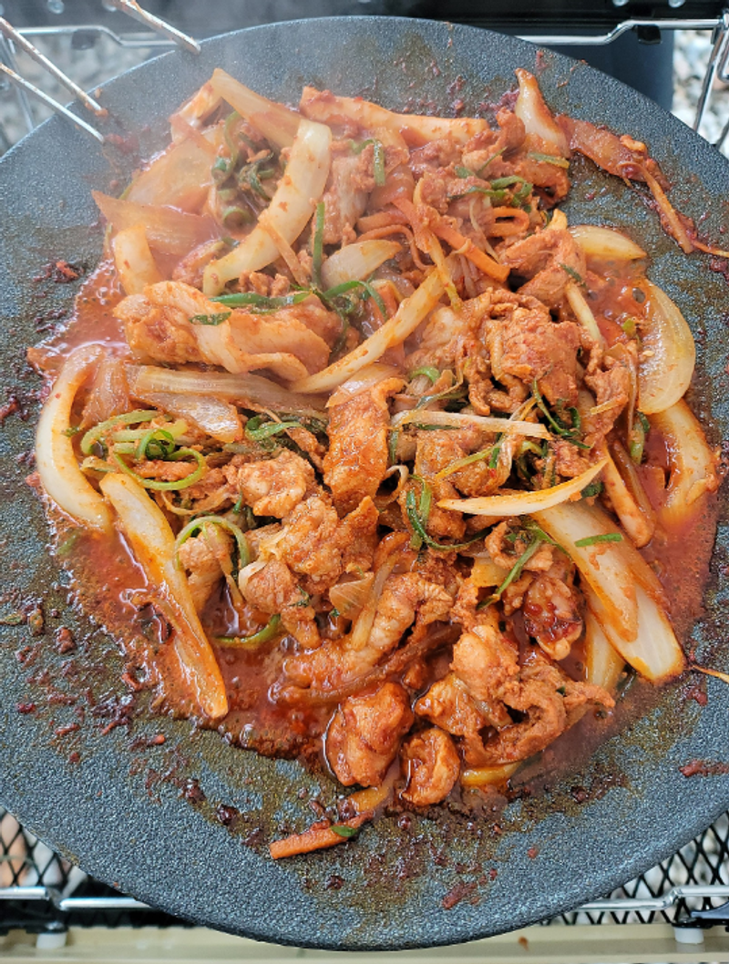 볶다가 전날 남은 파채가 있으면 같이 넣고 볶아주기만 하면 완성!!