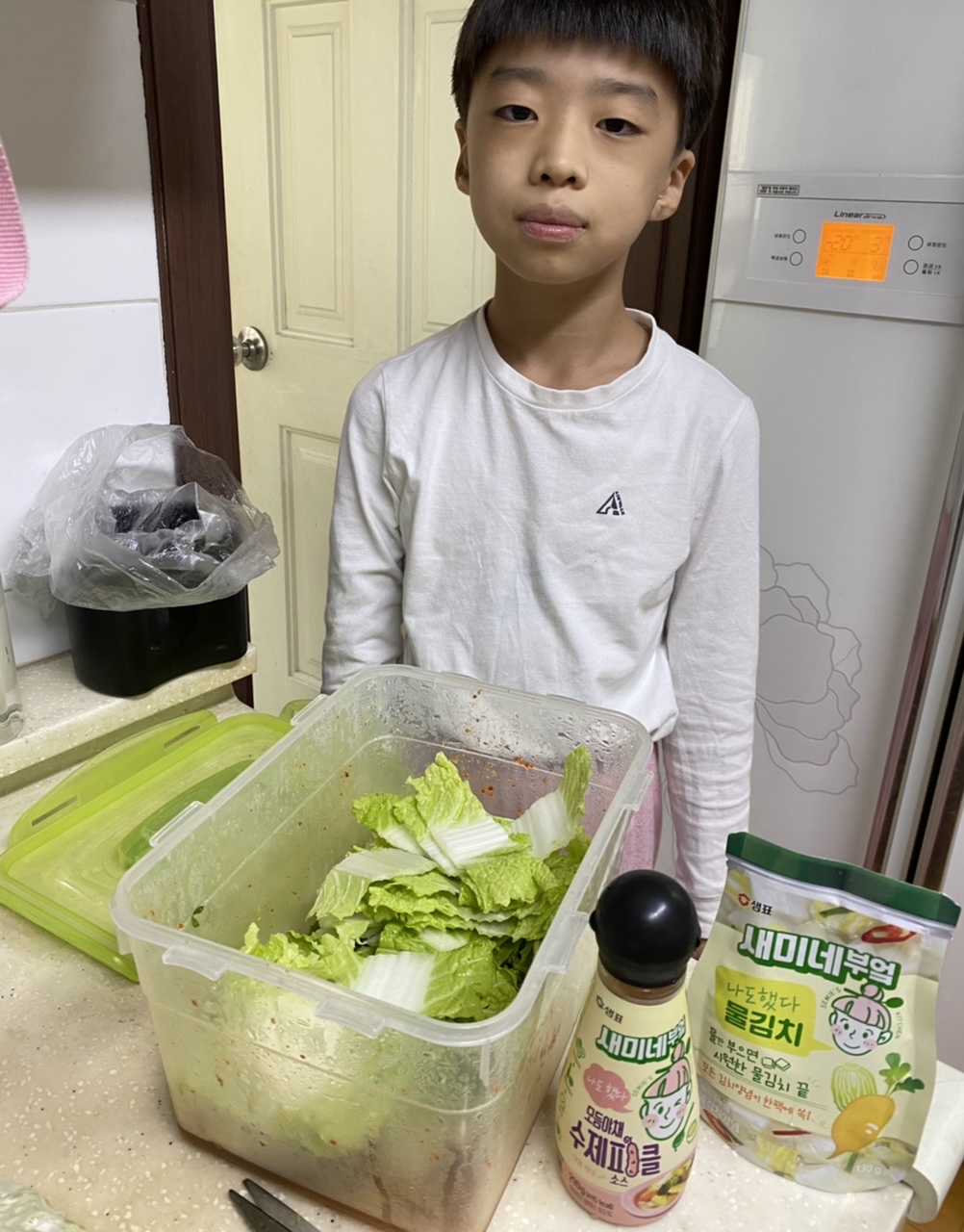 정말 심각하게 편식하는 아들이 물김치와 피클을 만들겠다고 나섰어요. 새미네부엌 아니었으면 저도 못하겠다고 포기했을텐데 요리법 읽어보니 자신이 생겼나봐요. 원래 하얀김치는 안먹고 피클은 손도 안대는 아이거든요. 직접 해보면 좀 먹겠구나 싶어서 도전했는데 뚝딱 만들더니 알아서 맛보네요.^^