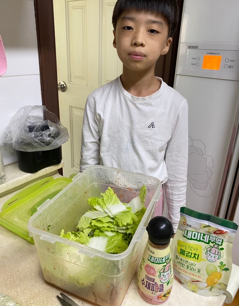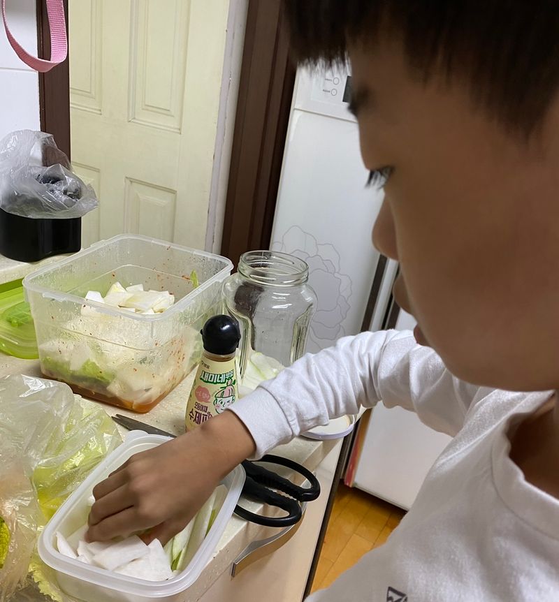 정말 심각하게 편식하는 아들이 물김치와 피클을 만들겠다고 나섰어요. 새미네부엌 아니었으면 저도 못하겠다고 포기했을텐데 요리법 읽어보니 자신이 생겼나봐요. 원래 하얀김치는 안먹고 피클은 손도 안대는 아이거든요. 직접 해보면 좀 먹겠구나 싶어서 도전했는데 뚝딱 만들더니 알아서 맛보네요.^^