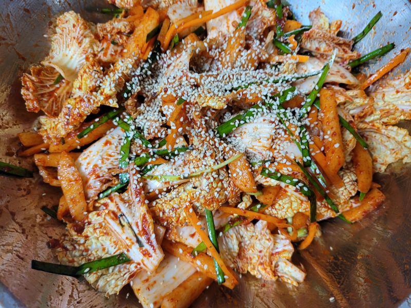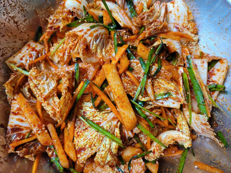오..무랑 당근이랑 야채가 같이 더 들어가니 먹음직스럽고 너무 제대로여요~ 겉절이~~배고프게 하네요~