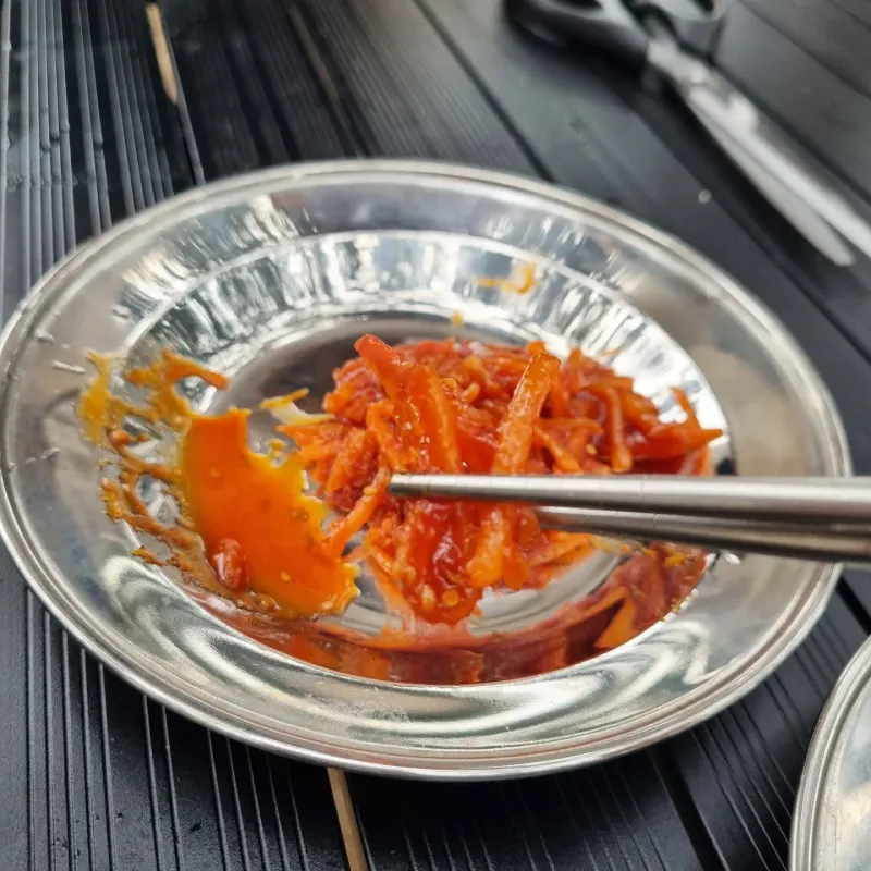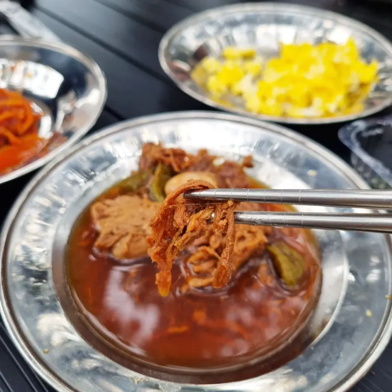 쓱쓱싹싹 밥도둑 시리즈 중 돼지고기장조림과 오징어채무침 둘 다 정말 밥도둑. 부대찌개 없었어도 이 두가지면 밥 한그릇 뚝딱 하겠더라고요.