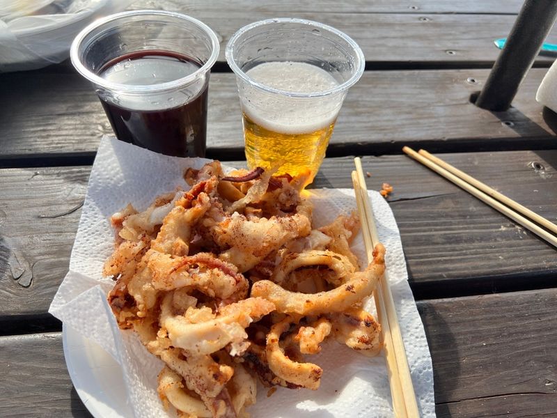 저는 캠핑 때는 무조건 튀김이에요!! 집에서 튀김하면.. 이곳저곳 기름에.. 냄새에 힘들죠 탁 트인 캠핑장에 가서 기름 넉넉하게 부어 오징어를 튀겨봅니다.^^ 남은 기름 이용해 야채도 튀기고ㅎㅎ 눈에보이는 거 다 튀겨봅니다. 역시 튀기면 다 맛있어요♡