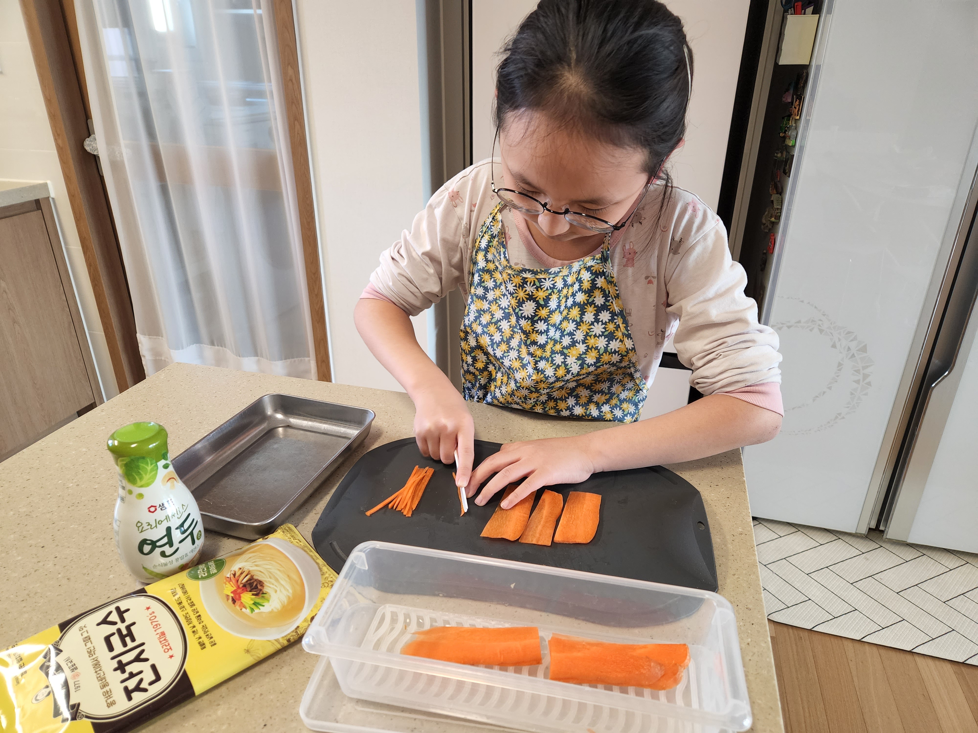 평소에 먹지 않는 당근이지만 얇게 얇게 썰어~~