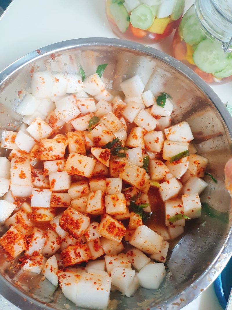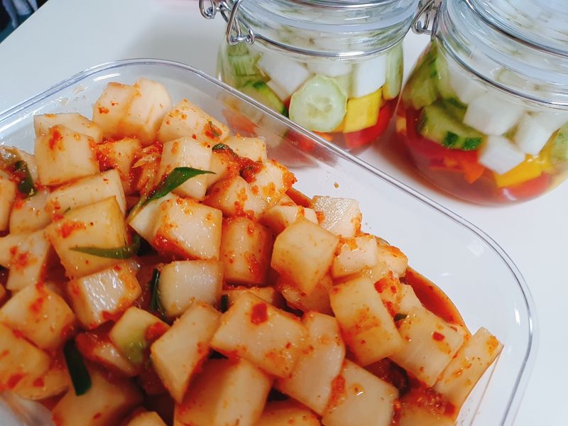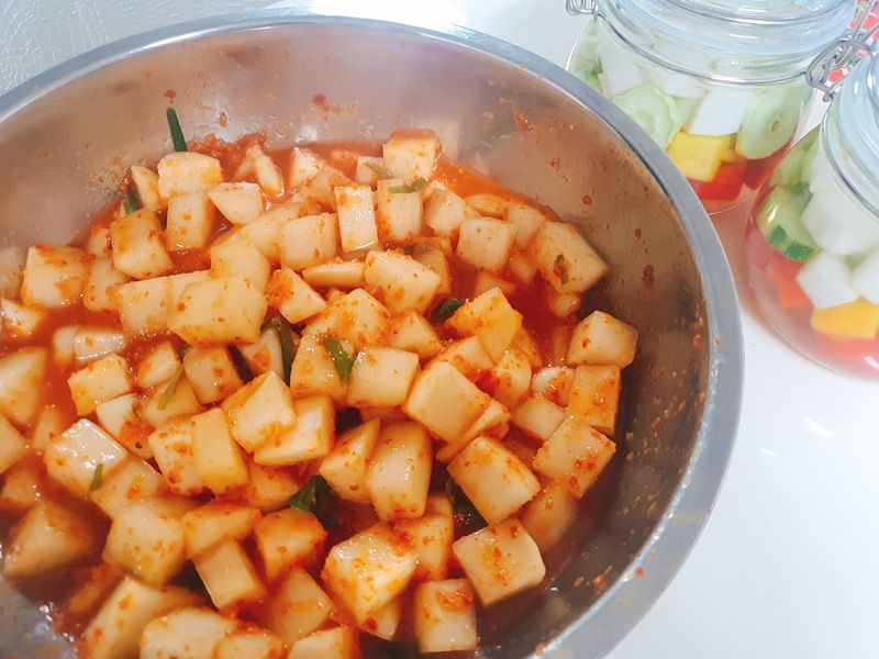 빛깔이 너무 예쁘네요. 깍두기도 넘 맛나보여요^^