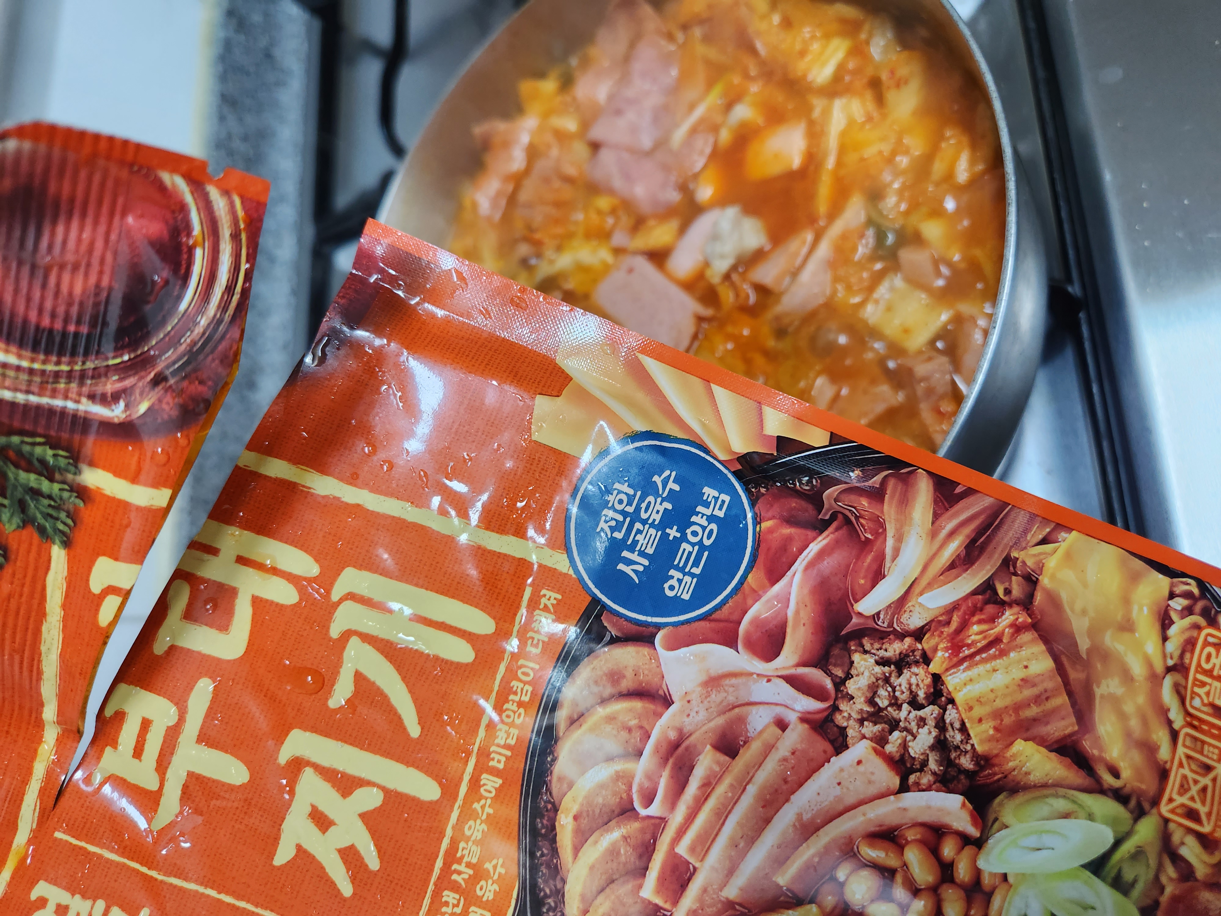 샘표 부대찌개 육수와 고기, 햄, 야채, 라면사리까지