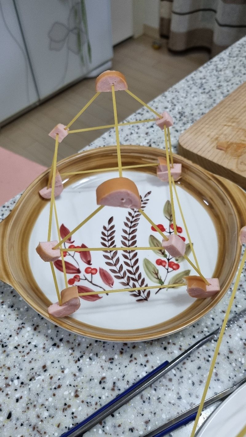 파스타와 소시지로 집도 만들고, 예쁜 동물들도 만들었어요~~