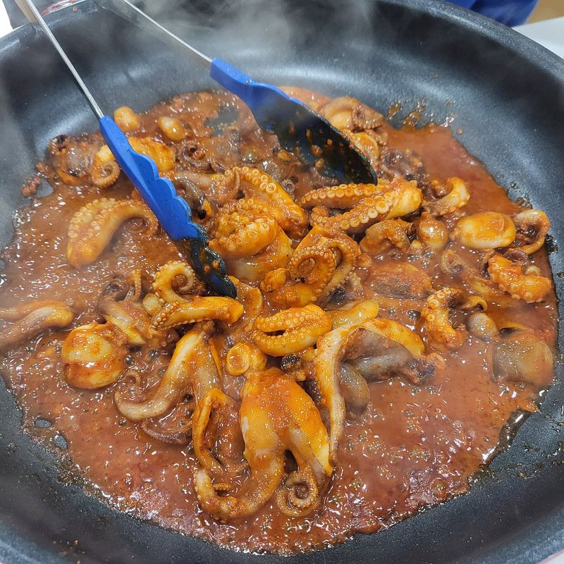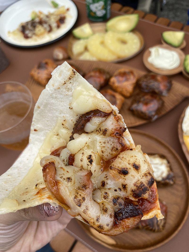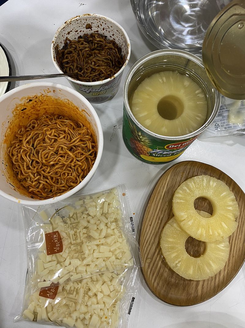 거창한 요리는 아니지만 간편하게 캠핑에서도 홈핑에서도 즐길수 있는 [쭈꾸미 하와이안피자] 와 [쭈꾸미 불닭/짜파쌈] 쭈꾸미를 먼저 지글지글 익혀주고요~. tip.쭈꾸미 쌈을 만들기 위해 다리는 자르지 않고 모양 유지해주세요. 또띠아 한장에 마요네즈 디핑소스를 펴발라 주세요. 쌈으로 먹을 붉닭볶음면과 짜파게티도 완성하고, 맛나게 볶아낸 쭈꾸미를 적당한 크기로 잘라 또띠아 위에 올려주시고 (양념도 같이 펴발라 주시면 좋아요.) 적당히 자른 파인애플을 쭈꾸미 사이사이에 고고! 토치로 파인애플도 익혀주고 쭈꾸미에 불향을 입혀입혀~ 칙칙!! 모짜렐라 치즈를 듬뿍듬뿍 뿌려주세요~ 세팅하고나서 먹기직전에 토치로 치즈를 녹여주어요~파인애플이 쭈꾸미의 매운맛도 잡아주고~ 불향도 굿굿!! 월남쌈~ 쭈꾸미를 넣어 색다르게 만들어 봤어요. 쭈꾸미 다리모양을 그대로 살려 볶아낸 쭈꾸미를 먼저 올리고 한입정도 양의 면을 쭈꾸미 위에 올려주시고 오른쪽- 왼쪽-위-아래 접어주세요.(순서 바뀌어도 무관ㅋㅋㅋㅋ) 비쥬얼 너무 좋고.. 이제 맛있게 먹어주면 됩니다아!!! 쭈꾸미 ~ 불닭볶음면이랑 너무 잘어울리는 궁합이어요. 마시쒀마시쒀~~