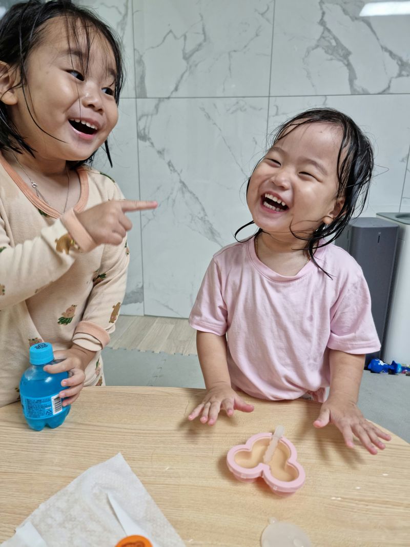 쏟아도 꺄르륵 그저 좋은 아이들이죠!