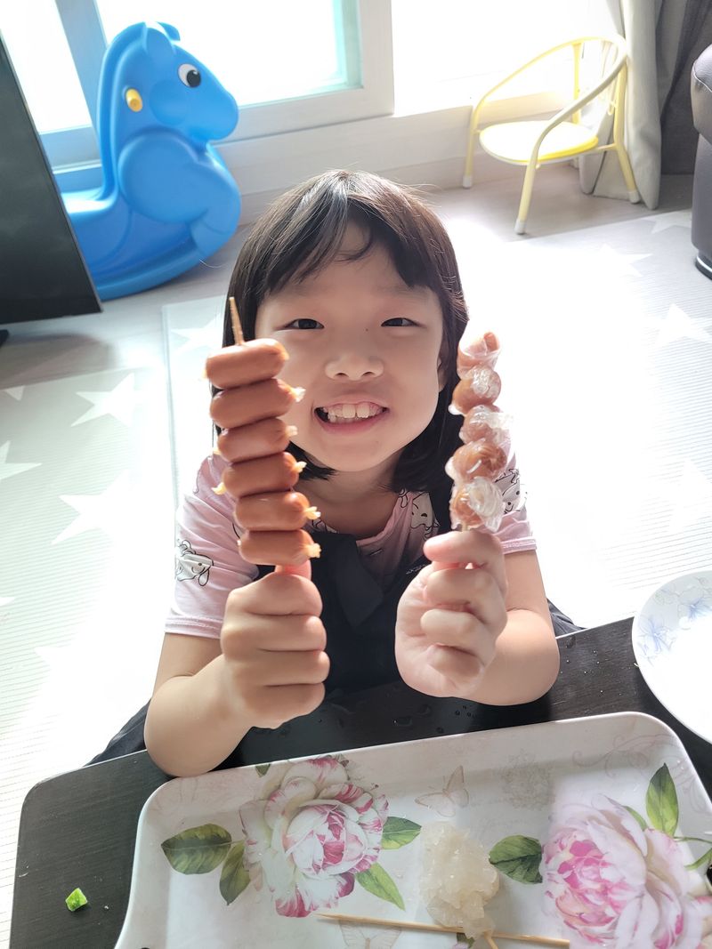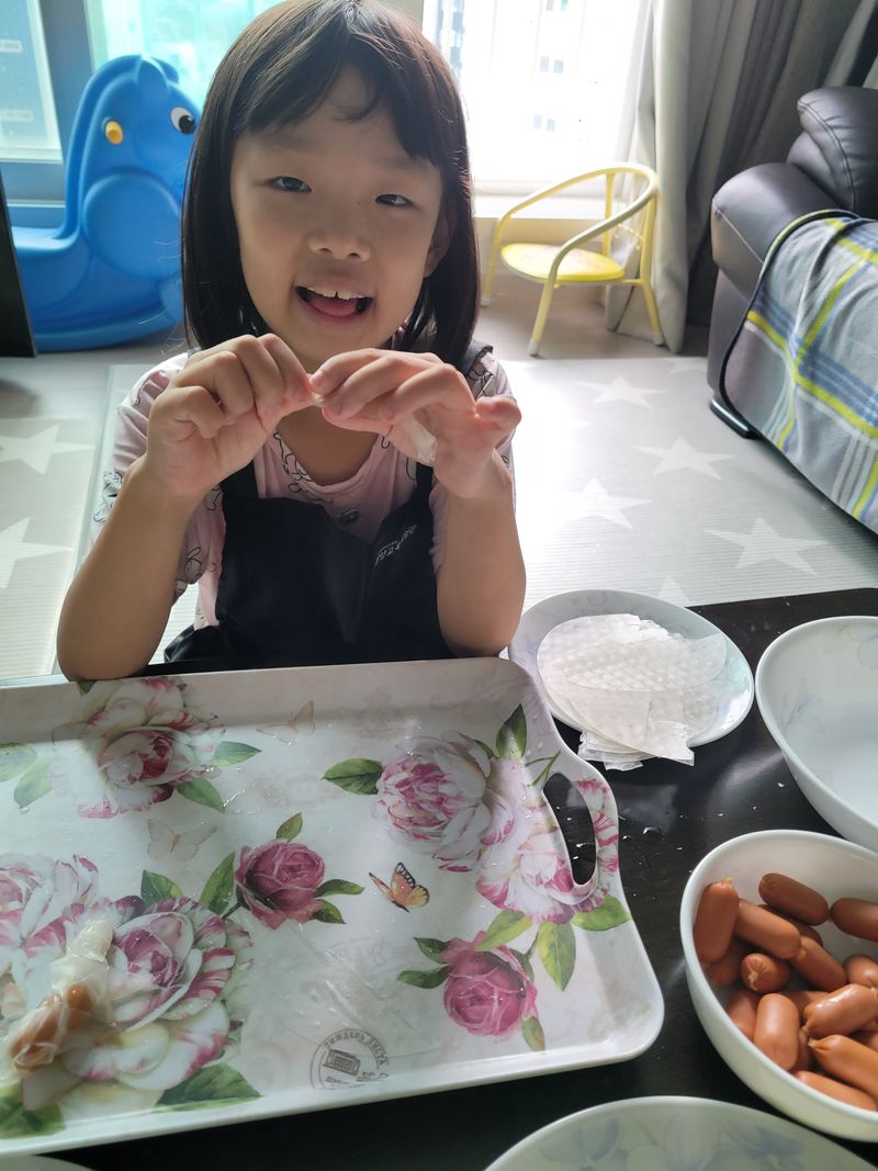 라이스페이퍼로 쏘세지 꼬지 만들어봤어요 요리하기는 언제든 즐거워요 ㅎㅎ