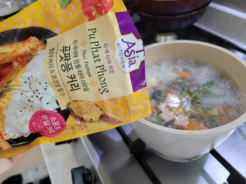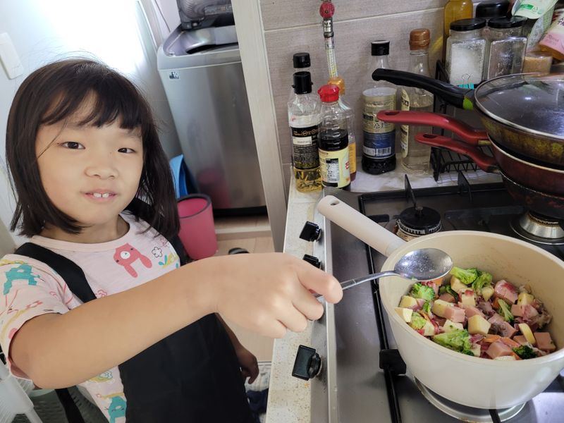 오늘 우리가족을 위한카레 만들기 도전 엄마와함께 재료손질하고 카레가루도 부어줘요 ㅎㅎ 너무부드러워