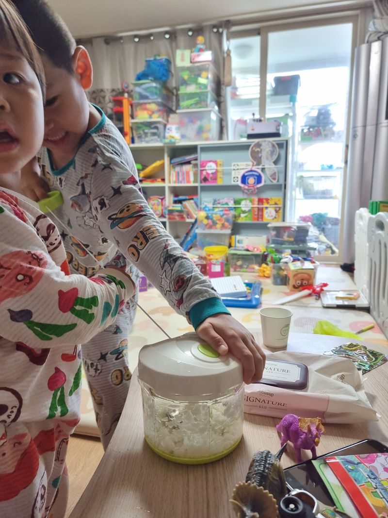 두번째요리는 애기들이랑 야채품은 계란빵이에요. 시내돌아다니다가 보이면 꼭 사먹는게 계란빵,바나나빵,붕어빵인데 간단하게 만들수있다니 바로 해봤어요 애기들앞에 양파 당근준비하고 계란이랑 모닝빵이랑 연두순만 있으면 준비완료!!!!