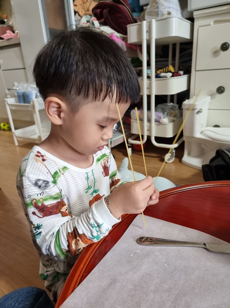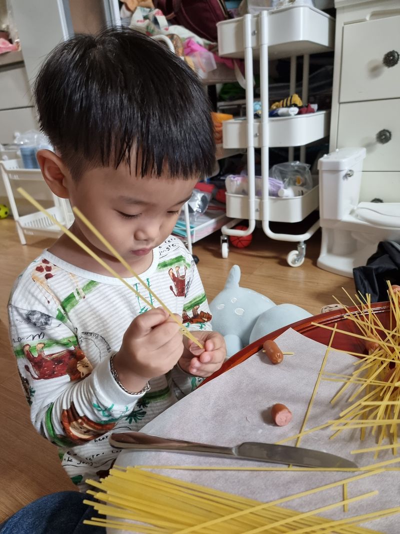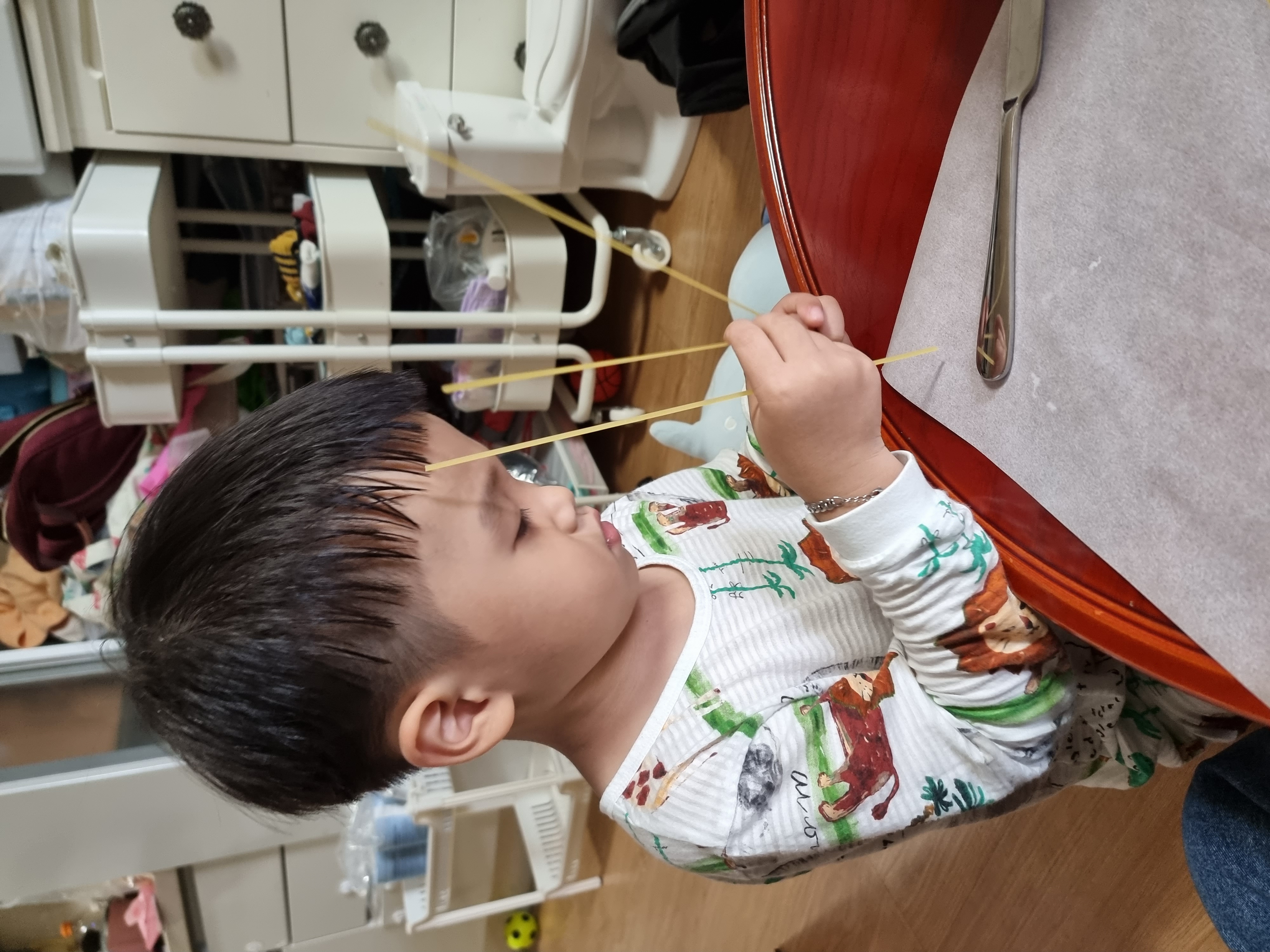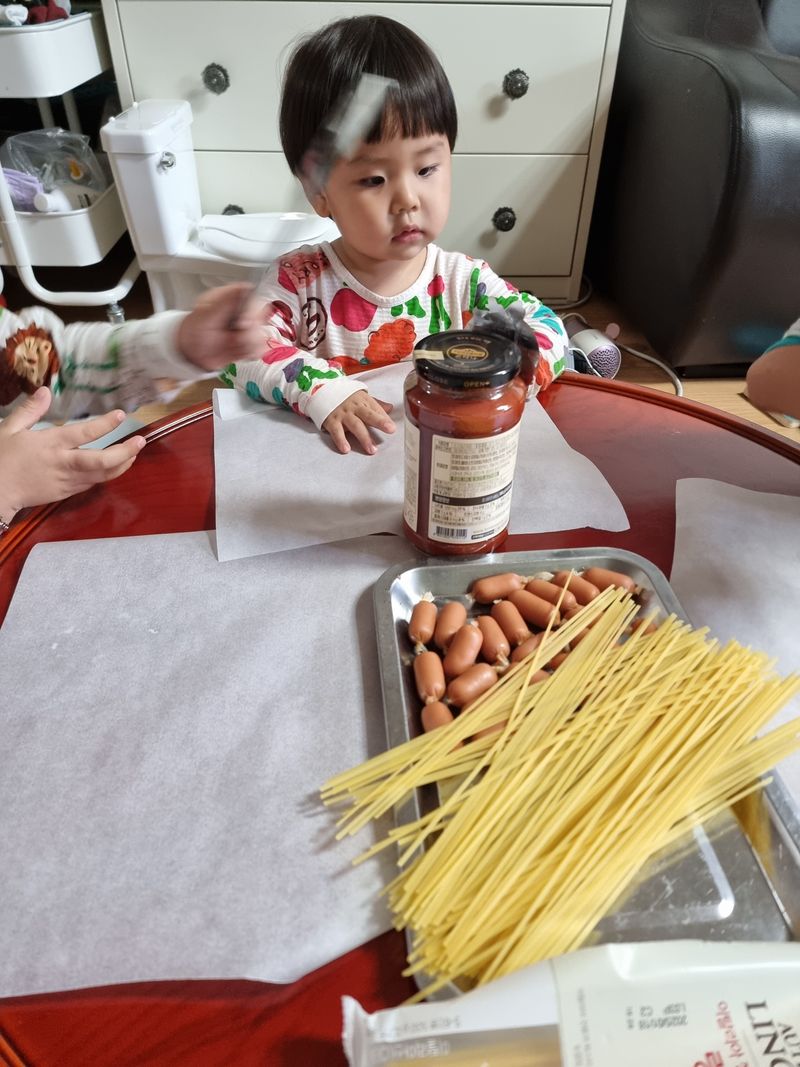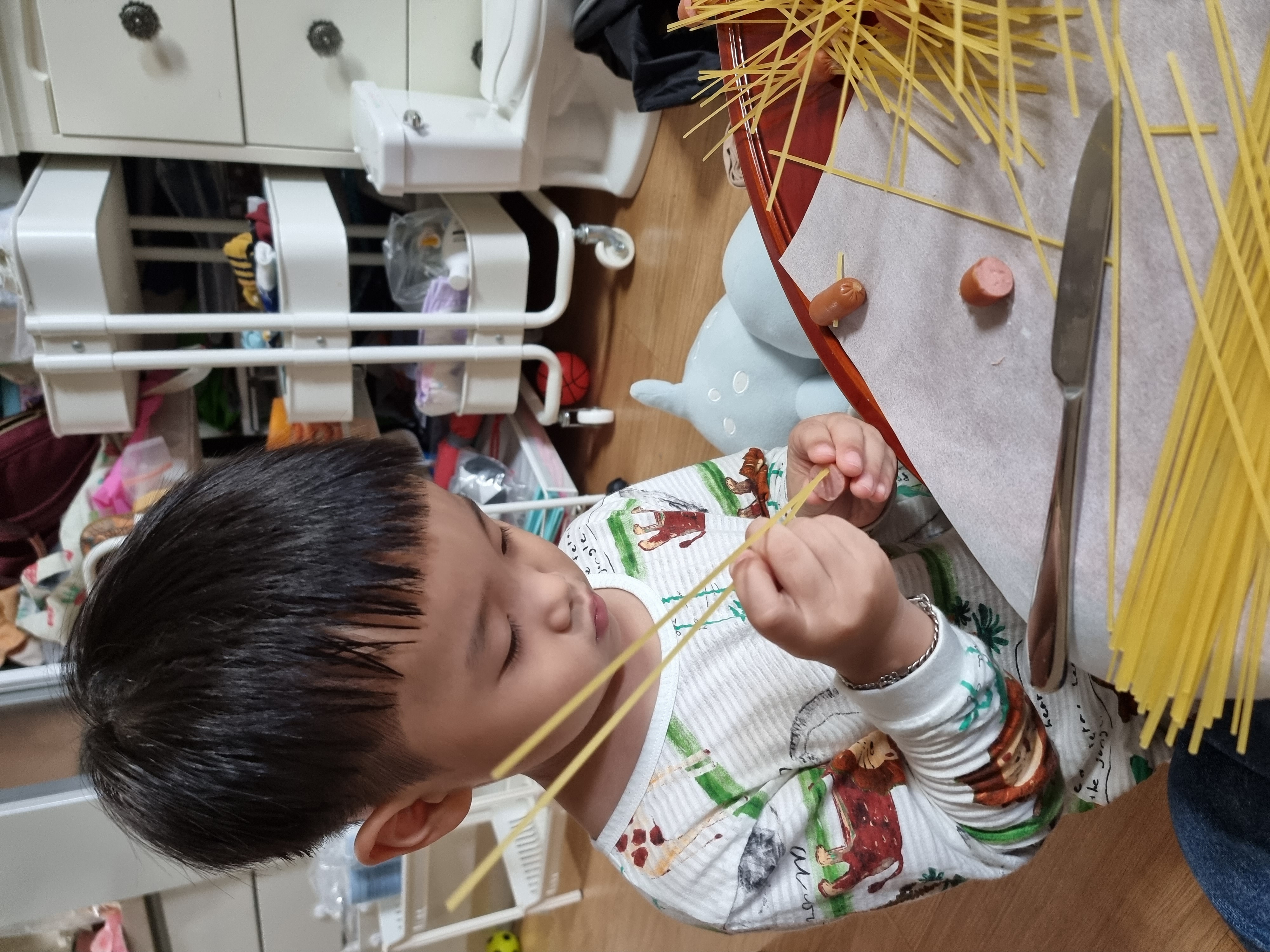 한시간넘게 파스타면으로 놀아서 오늘 요리놀이도 성공이네요