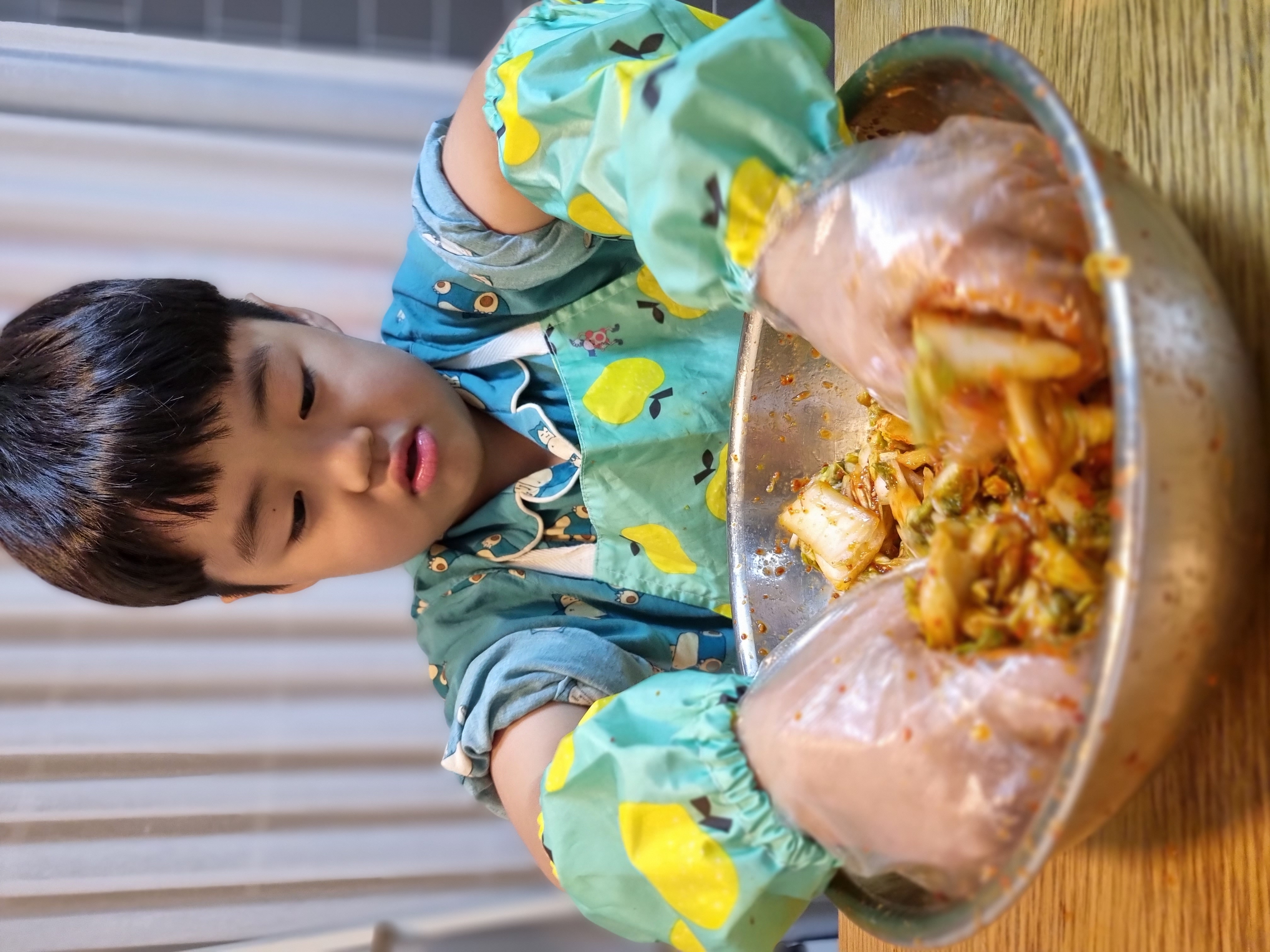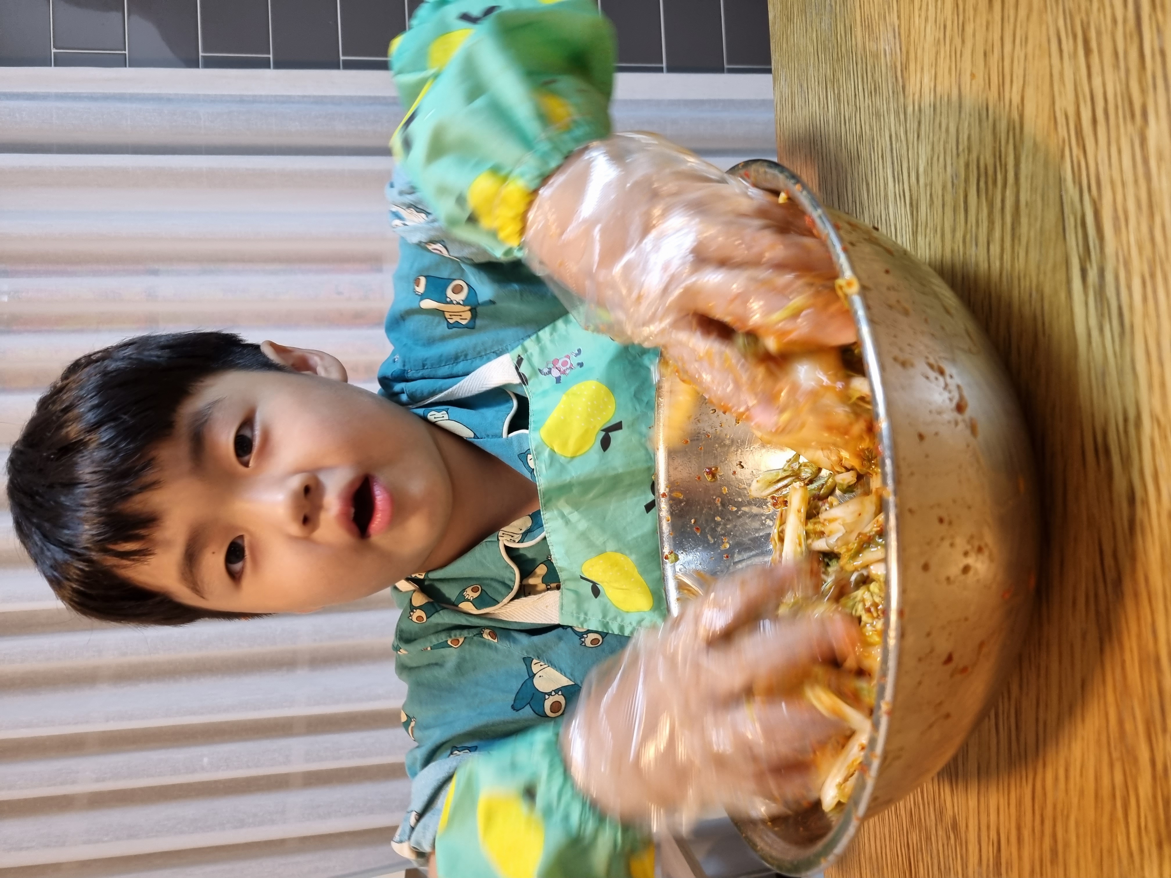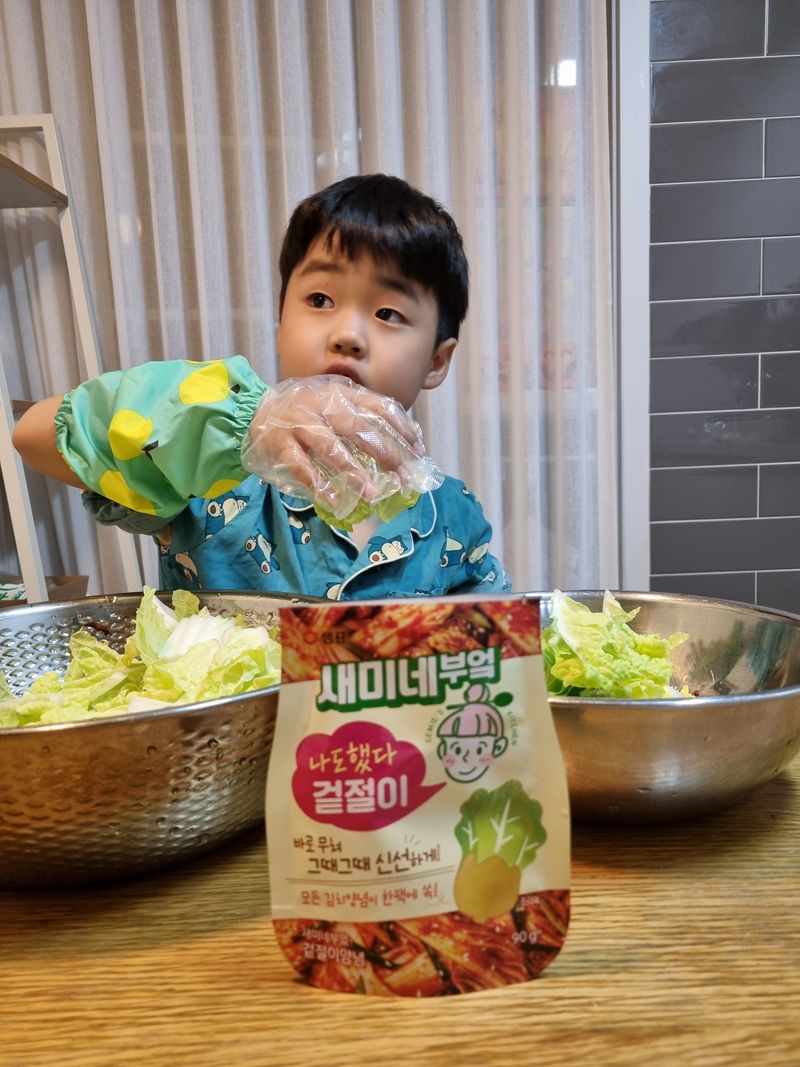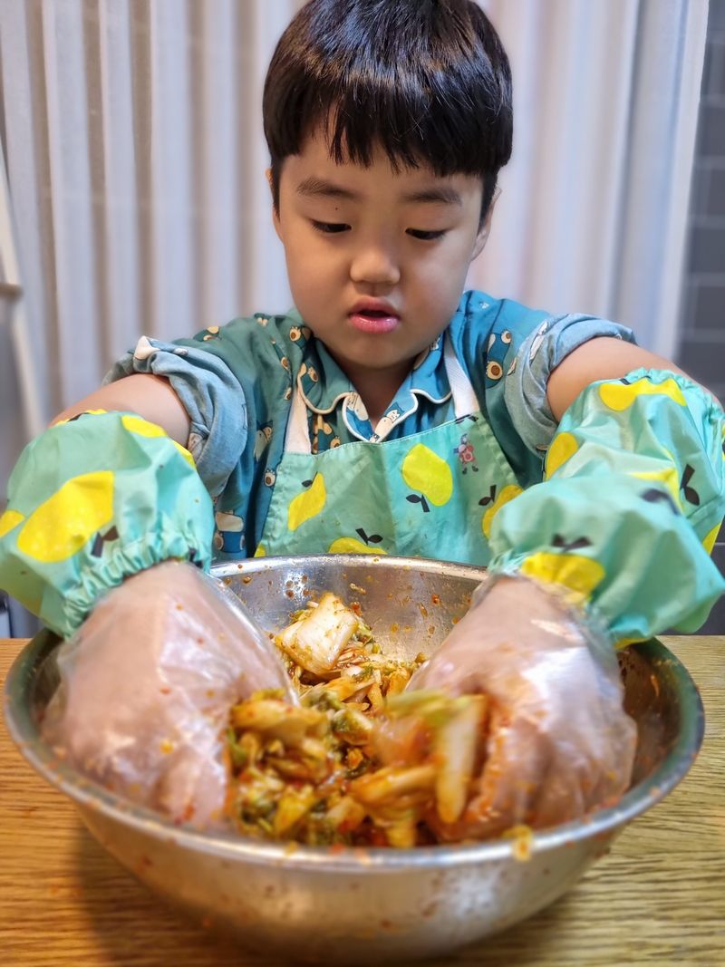 배추도 자르고 오른손으로 비비고~ 왼손으로 비비고~ 양손으로 주물주물~~