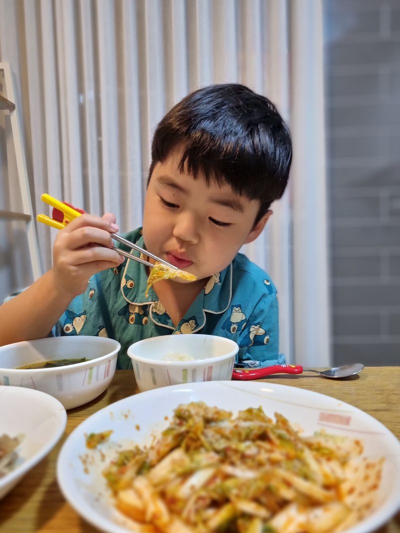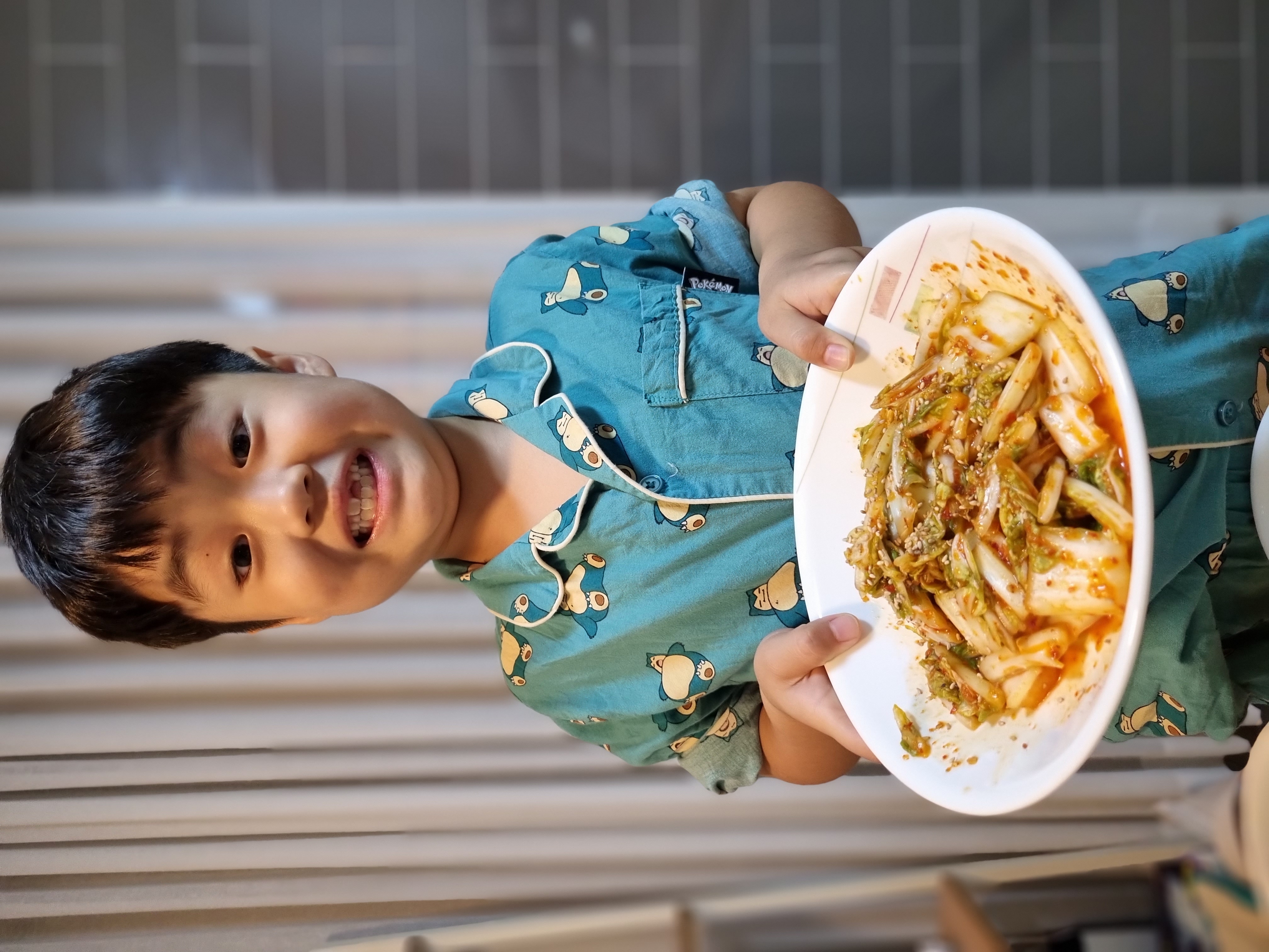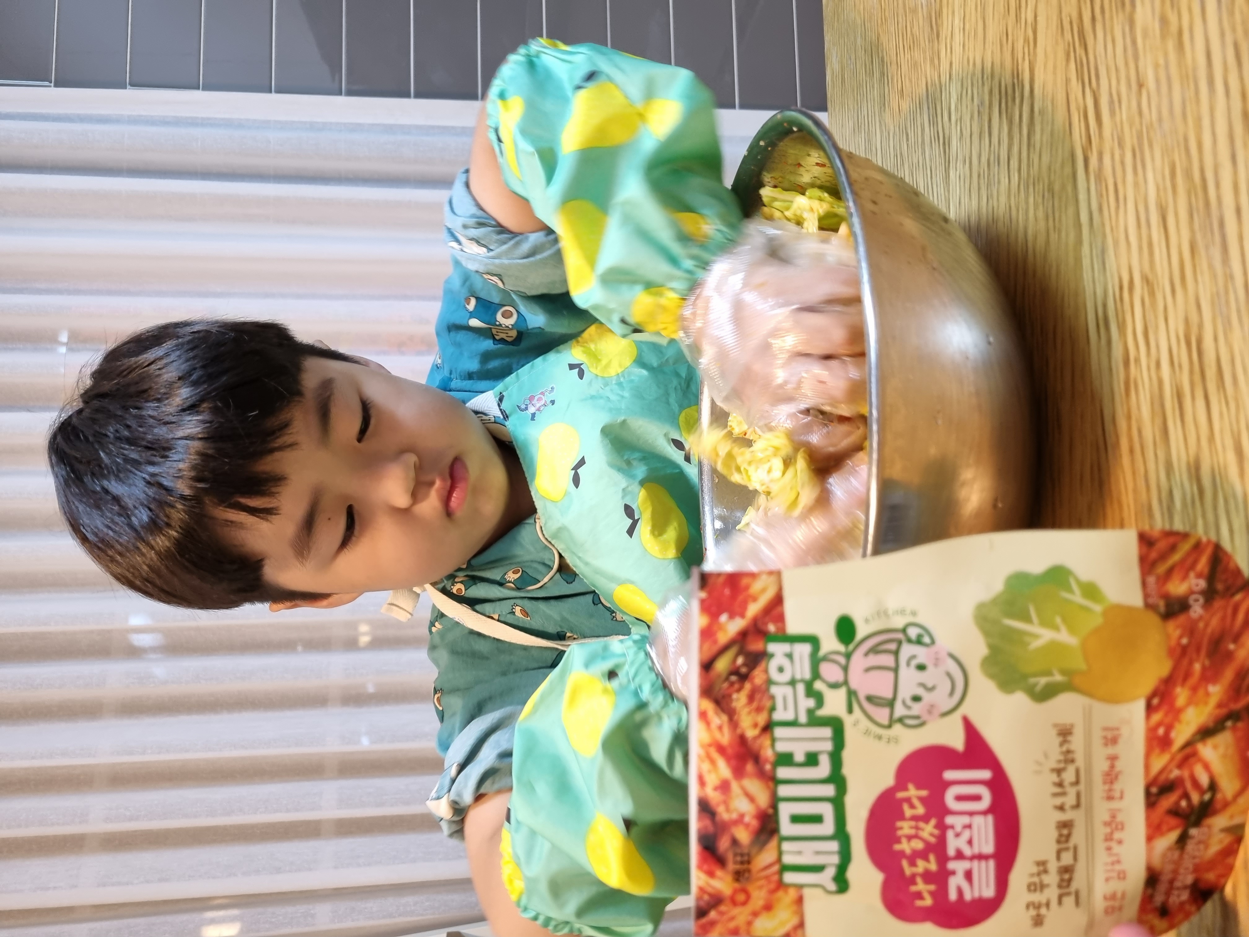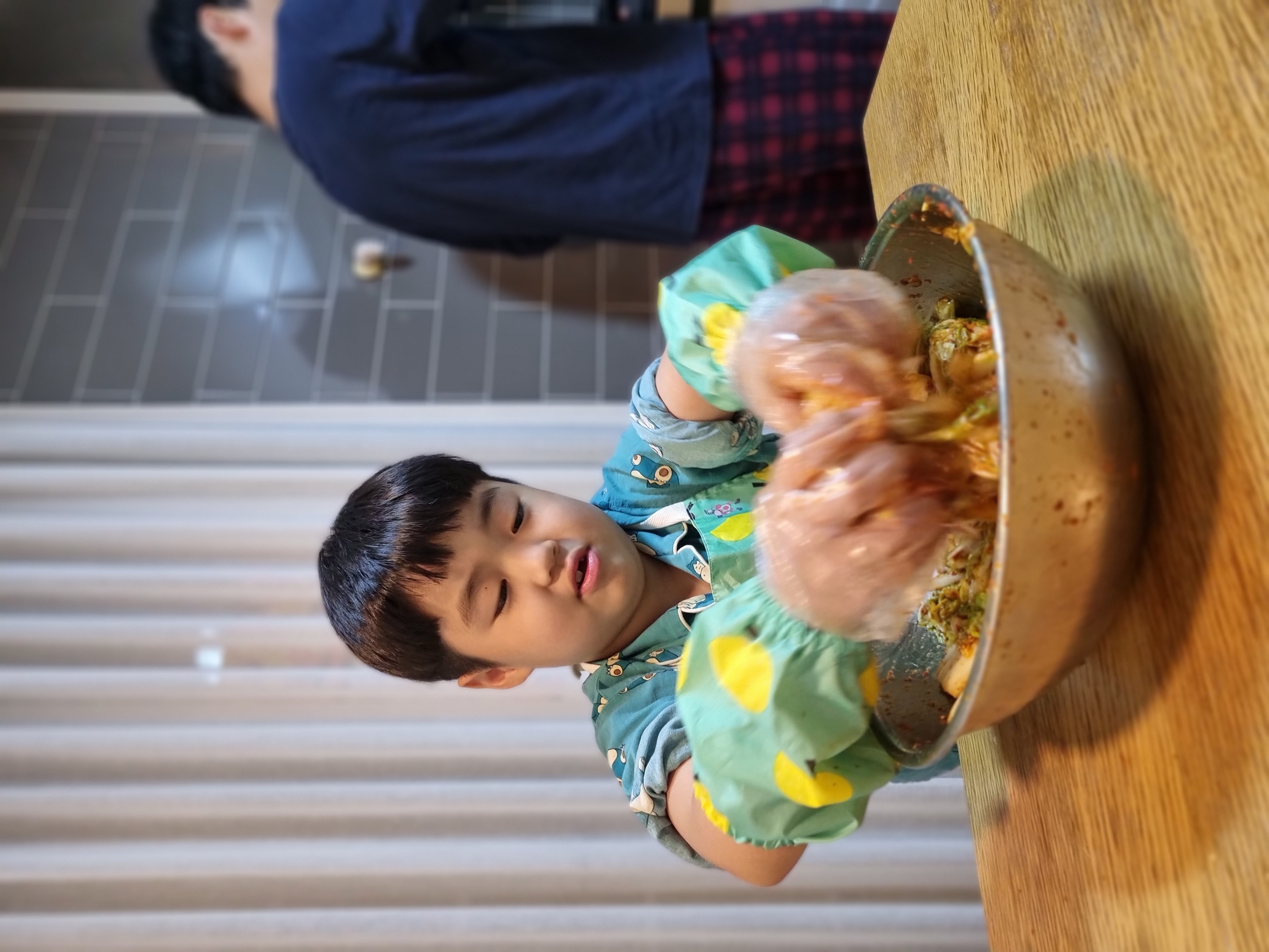 배추도 자르고 오른손으로 비비고~ 왼손으로 비비고~ 양손으로 주물주물~~