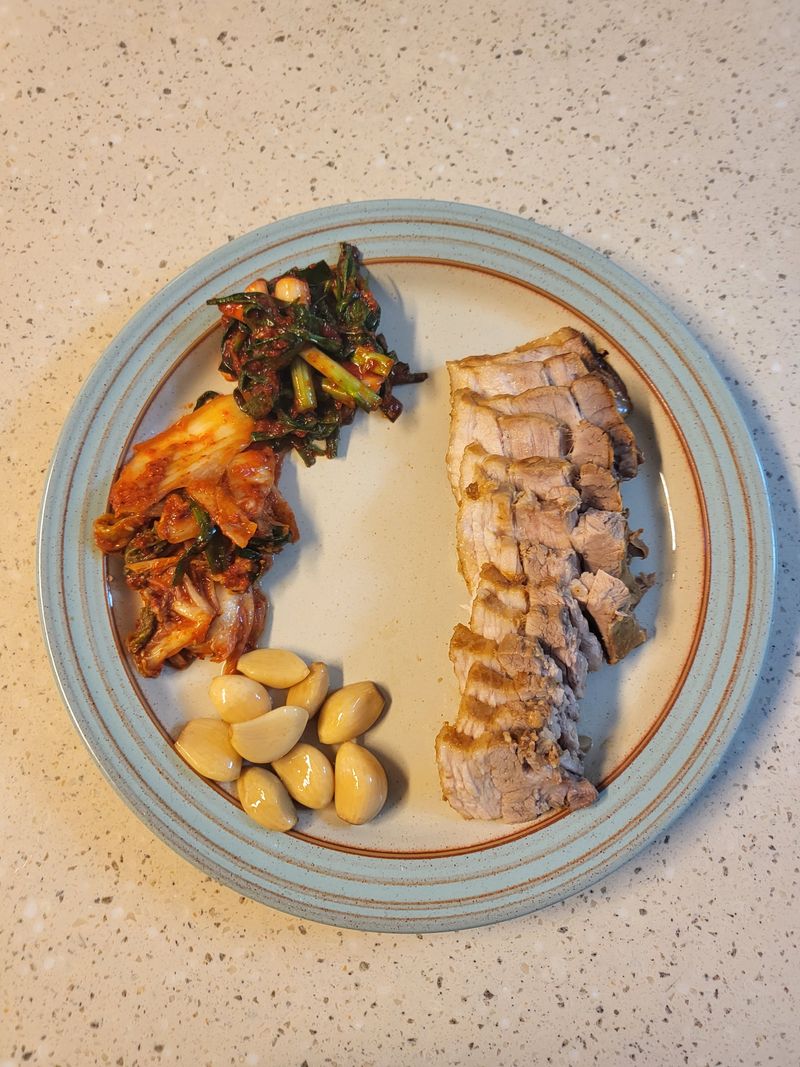 통삼겹살 사와서 토장 2스푼 고기에 골고루 발라준후 무수분 수육했더니 고기에 간도 잘 베고 고기 잡내도 없애줘서 맛있게 먹었어요!