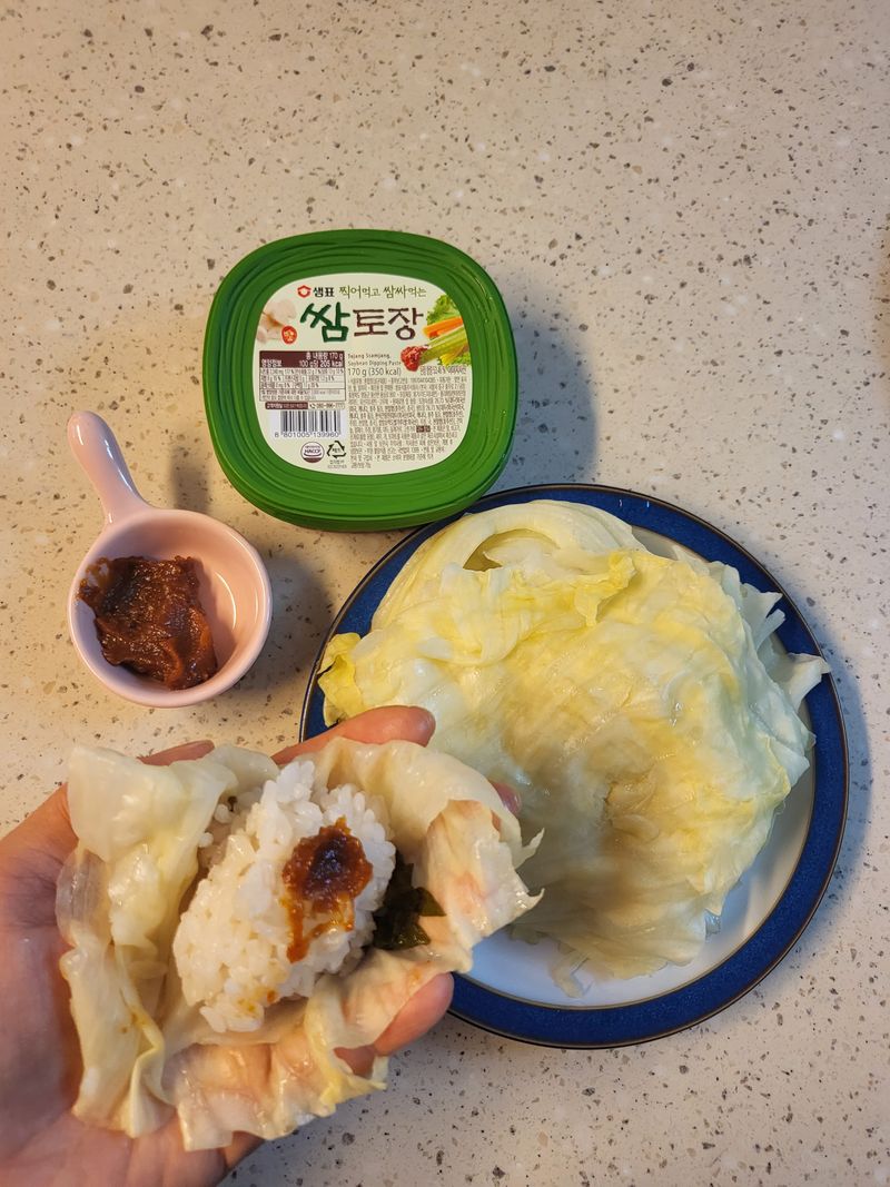 양배추 한통 소진하고자 쌈싸먹는데 쌈장이 맛있으니 고기없이도 맛있어요