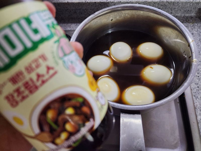 물에 삶은 계란넣고 소스넣고