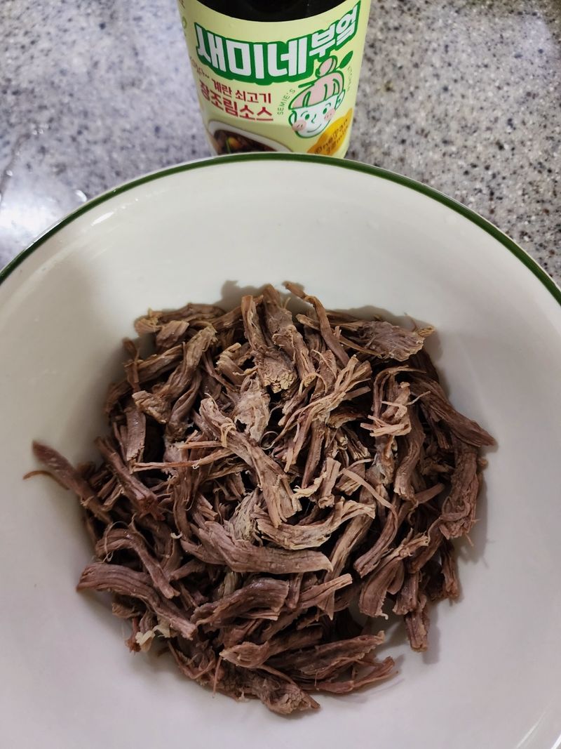 소고기도 삶아 찢어 넣었습니다(우둔살)