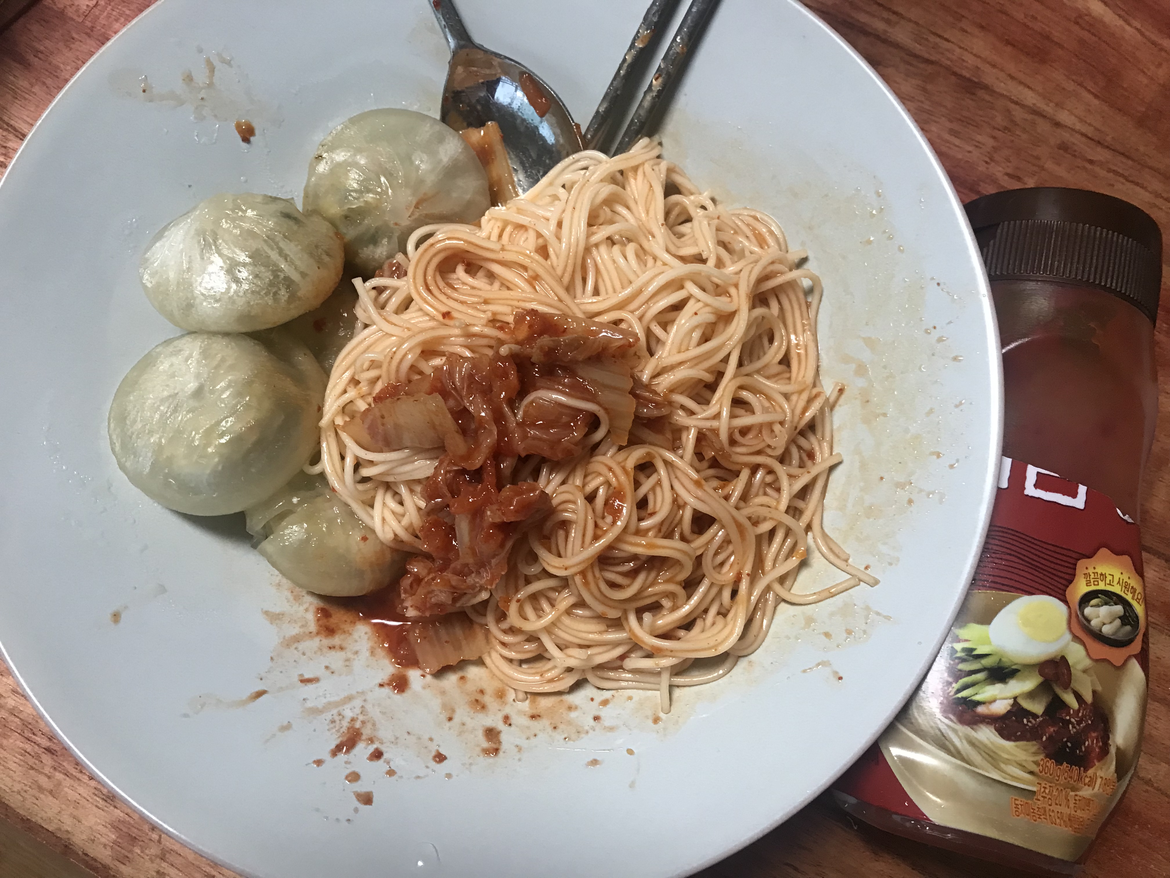 3.비빔장=으악 진짜 존맛탱 소면 삶아서 비빔장 넣고 비볐는데 완전 맛있어요(맛있어서 먹다가 사진 찍어서 저모양.)
