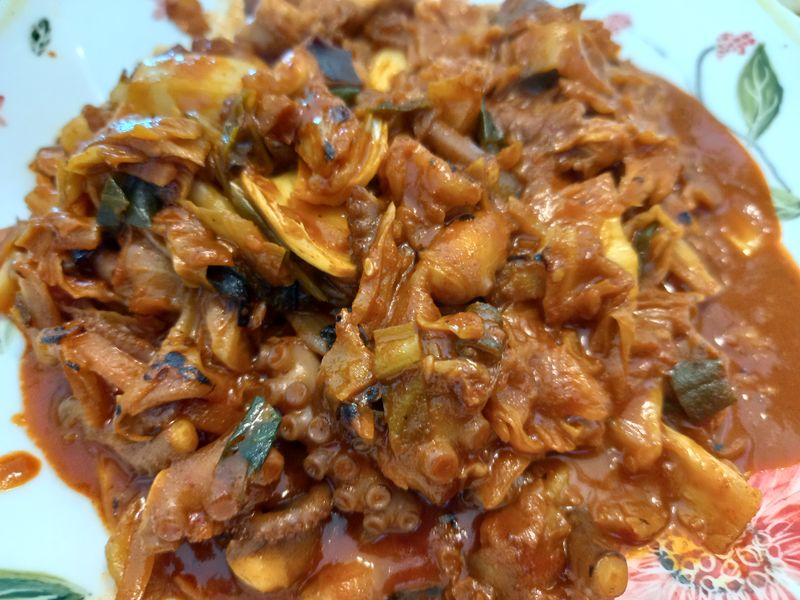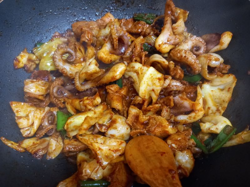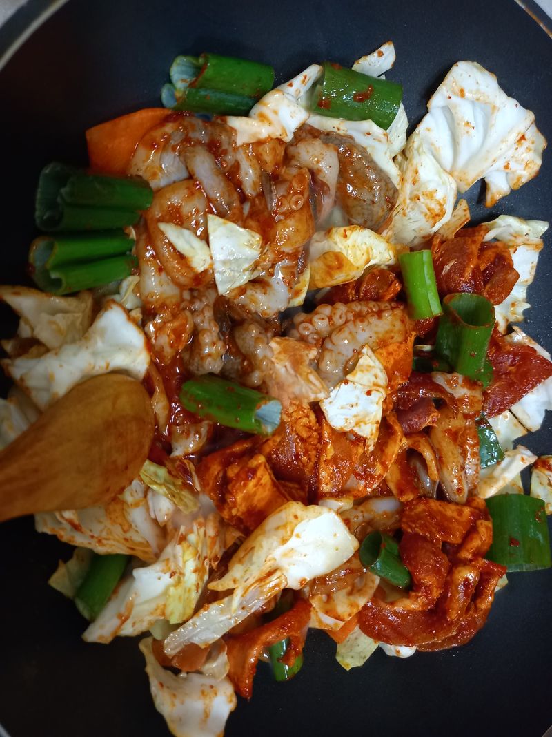 깨끗하게 세척한 낙지 센불에 화르륵 매콤하게 맛있는 낙지볶음 해먹었어요~!!