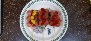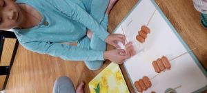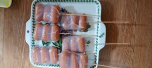 라이스페이퍼를 따뜻한물에 적셔서 꼬지에 돌돌 말아봤습니다.