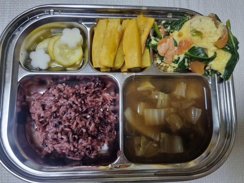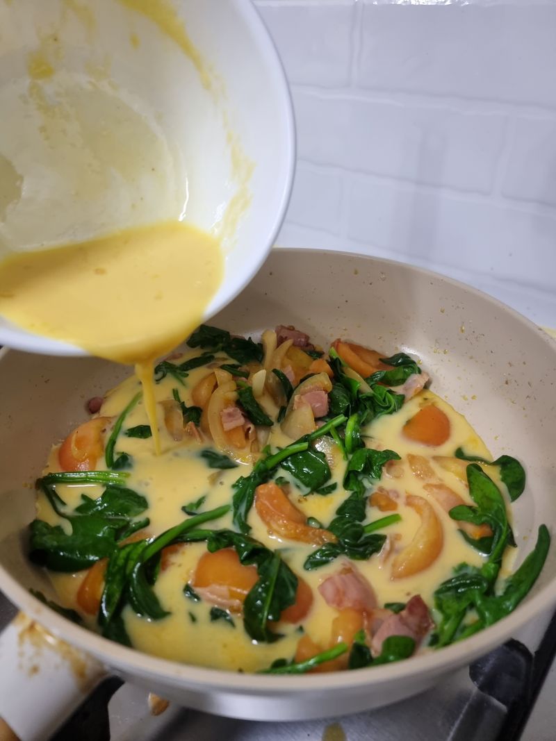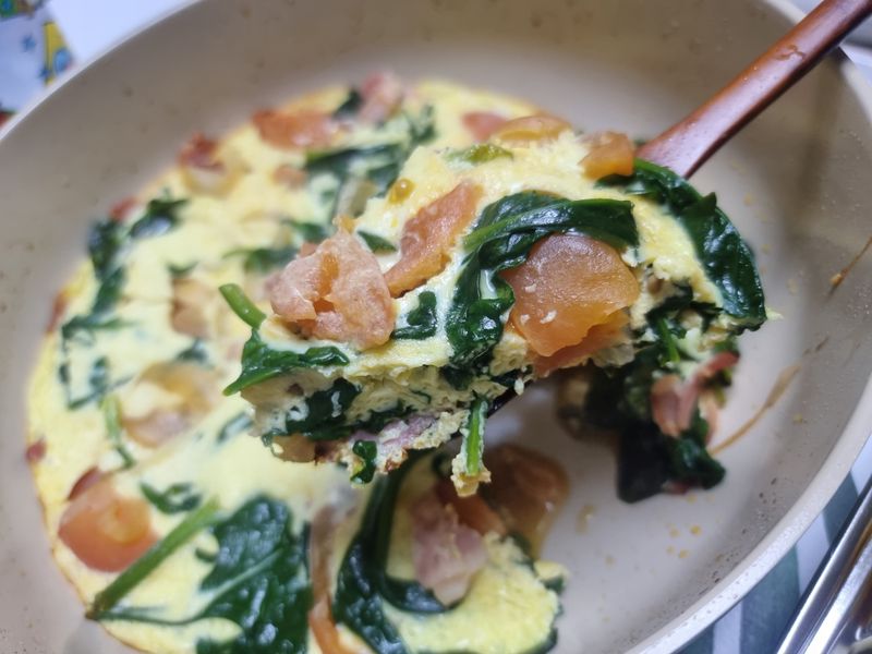 새미네부엌에서알게되어 종종 해먹는 프리타타 우리아이들은 계란피자라고 부른답니다^^ 계란, 시금치, 양파, 베이컨, 토마토등.. 건강한식재료들이 들어가서 한끼식사로도 든든해요 👍 모양틀로찍어낸 오이무피클과 함께하니 더욱 훌륭한 한끼가되었네요:)