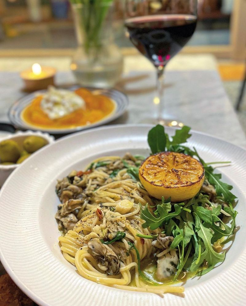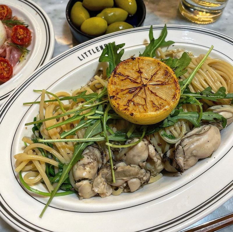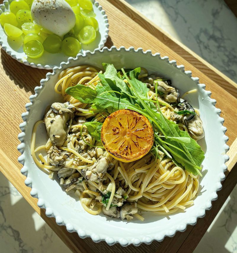 구운 레몬의 묵직한 산미와 굴의 시원한 맛이 매력적인 굴파스타를 즐겨보세요:)