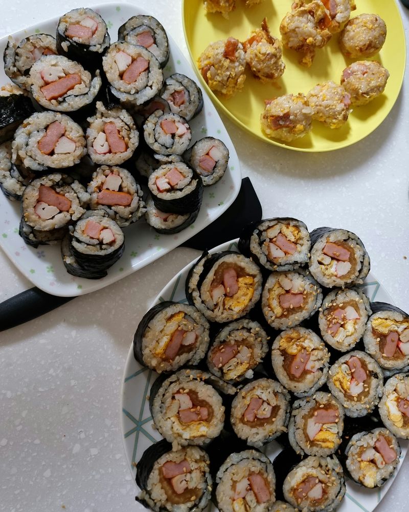 맞아요. 꼬마 김밥 싸는 거 정말 어려워요^^;; 역시 김밥은 집 김밥이죠!