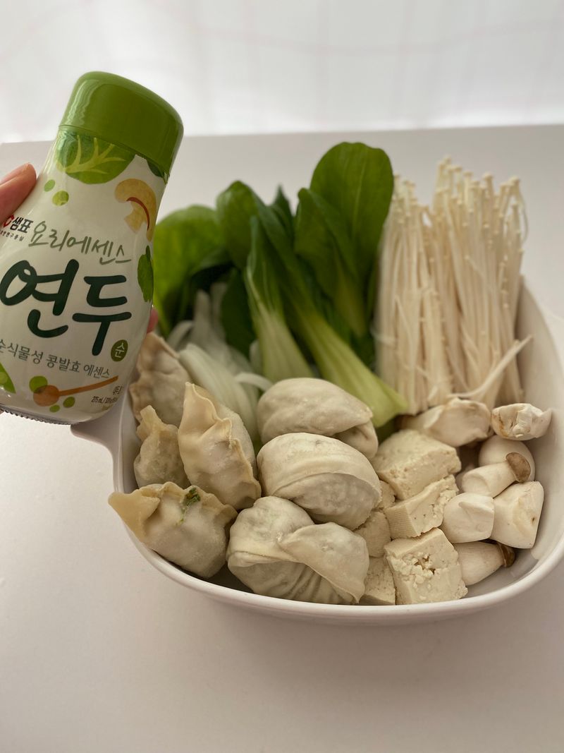 청경채와 팽이버섯 새송이버섯 두부와 만두를 넣고
