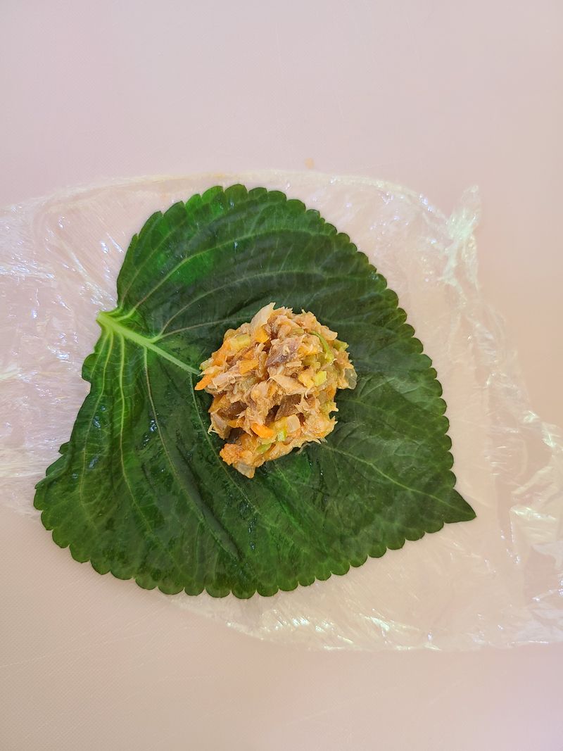 참치강된장 넣은 동글동글 깻잎쌈밥