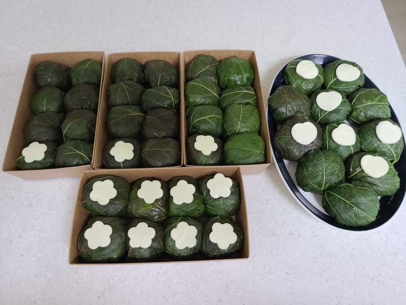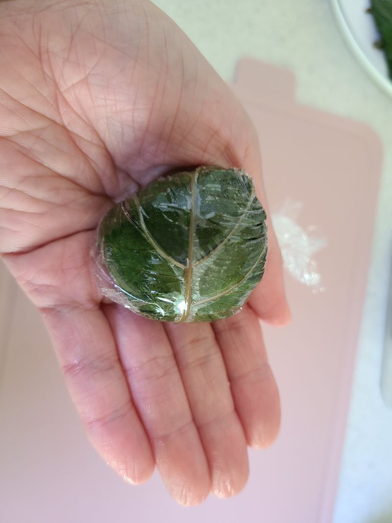 살짝 데친 깻잎에 된장소와 밥을 넣어서