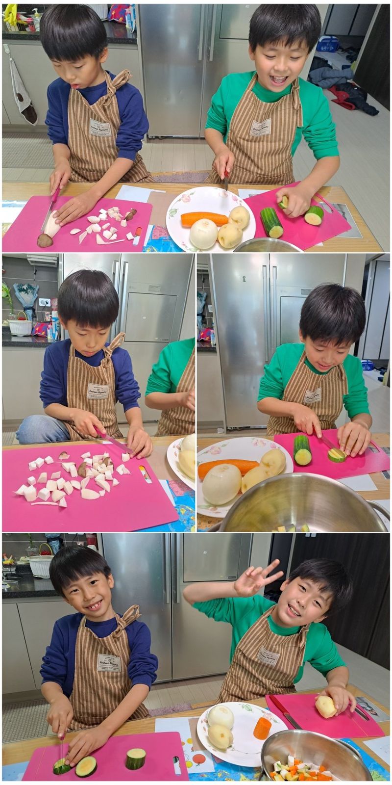 제가 야채를 씻어서 준비해주고 아이들이 직접 칼질을 해서 야채를 잘랐습니다. 야채의 모양과 크기는 모두 제각각이지만 그과정 속에서 재미와 기쁨을 느끼는 아이들이 있고 그모습을 보고 있는 저도 너무 즐거운 시간이었습니다.