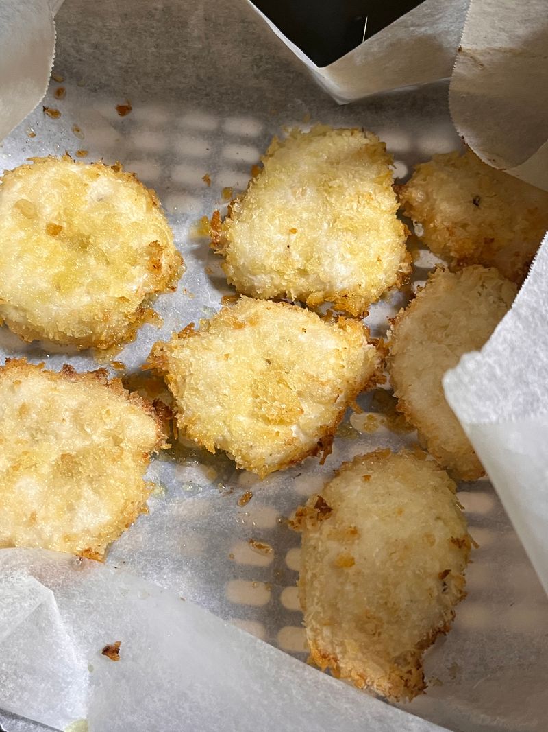 생 닭가슴살을 받았는데,, 퍽퍽하게 먹긴 싫어해서 다져서 치킨너겟을 만들어봤오요! 다지고 후추소금마늘넣고 빵가루 묻혀 튀기면 끝이라 넘 쉽고 넘 재밌고 맛있어욤 ㅎㅎㅎㅎ 후라이팬 vs 에어프라이어 둘다 다른 매력 💓