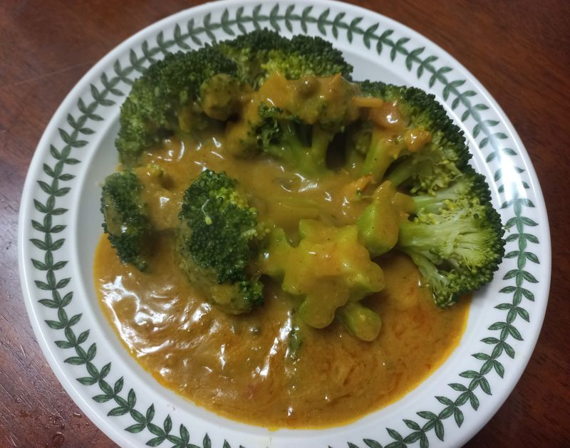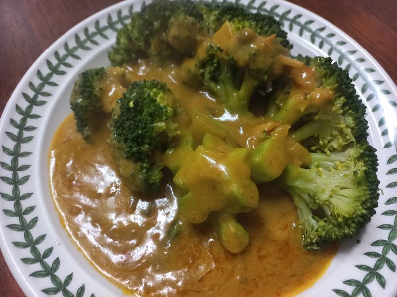이걸 요리라고해도 될까요? ㅠㅠㅋㅋㅋ 데친 브로콜리 한송이에 뜨끈하게 데운 커리 한 팩!! 여기에 빵이나 또띠아하나 추가해서 먹으면 이보다 더 좋을 순 없어요 ㅎㅎ