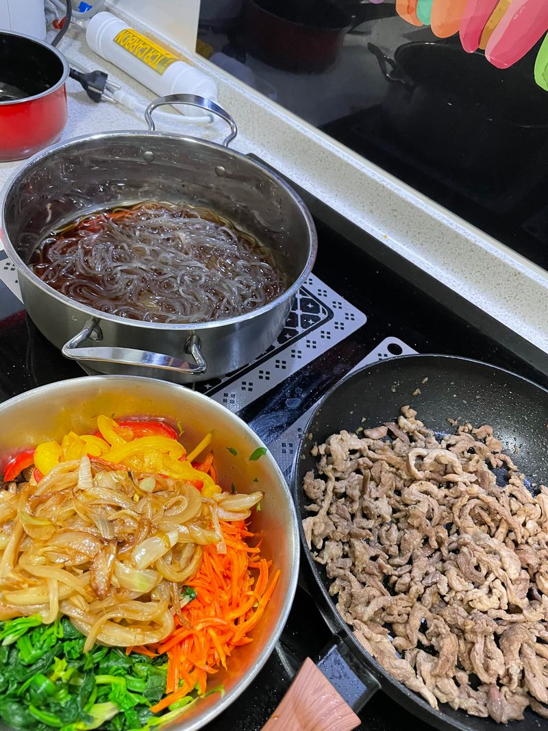 남편이 제일 좋아하는 와이프표 잡채! 당면을 별로 안좋아해서 다른 재료들을 더 많이 넣어줬습니다.