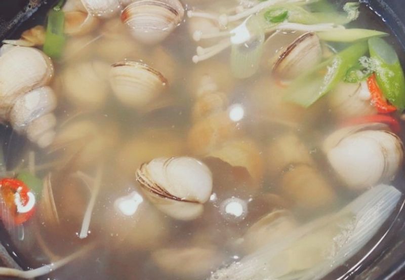 엄마가 시간이 되면 한번씩 해주시는 골뱅이전골 추운 계절인 겨울에 먹으면 시원한 국물맛에 밥한공기가 절로 들어가요 ^^ 엄마가 고추,부추, 대파,마늘 넣어 끓여주시는데 연두넣어 간을 맞추시더라구요
