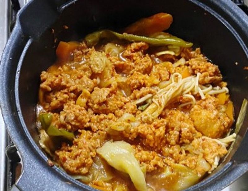 다양한 요리를 즐기는데 이번 제육에 부모님이 농사지어주신 야채랑 고추장, 버섯가루 등을 넣어