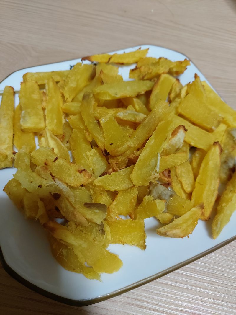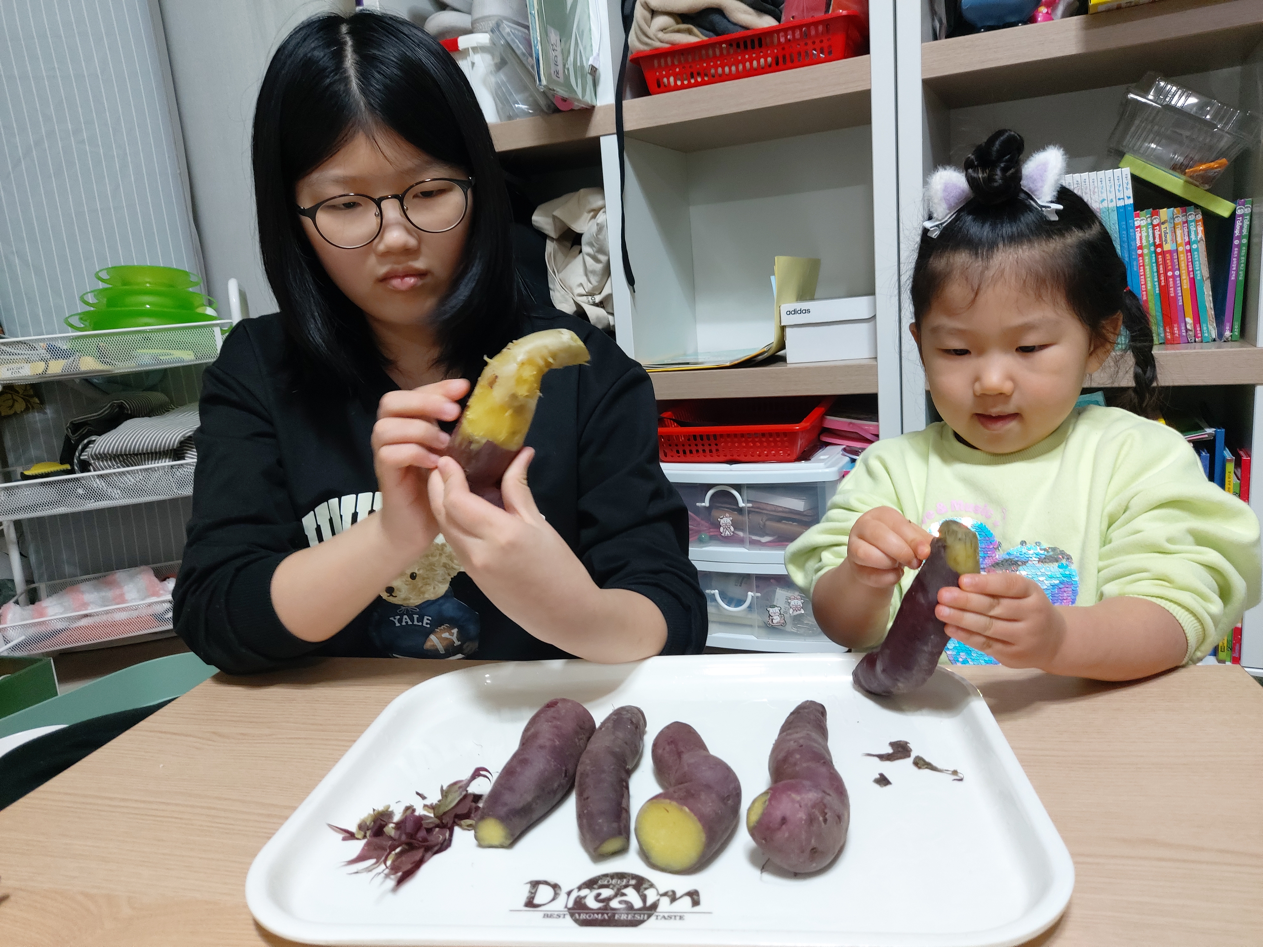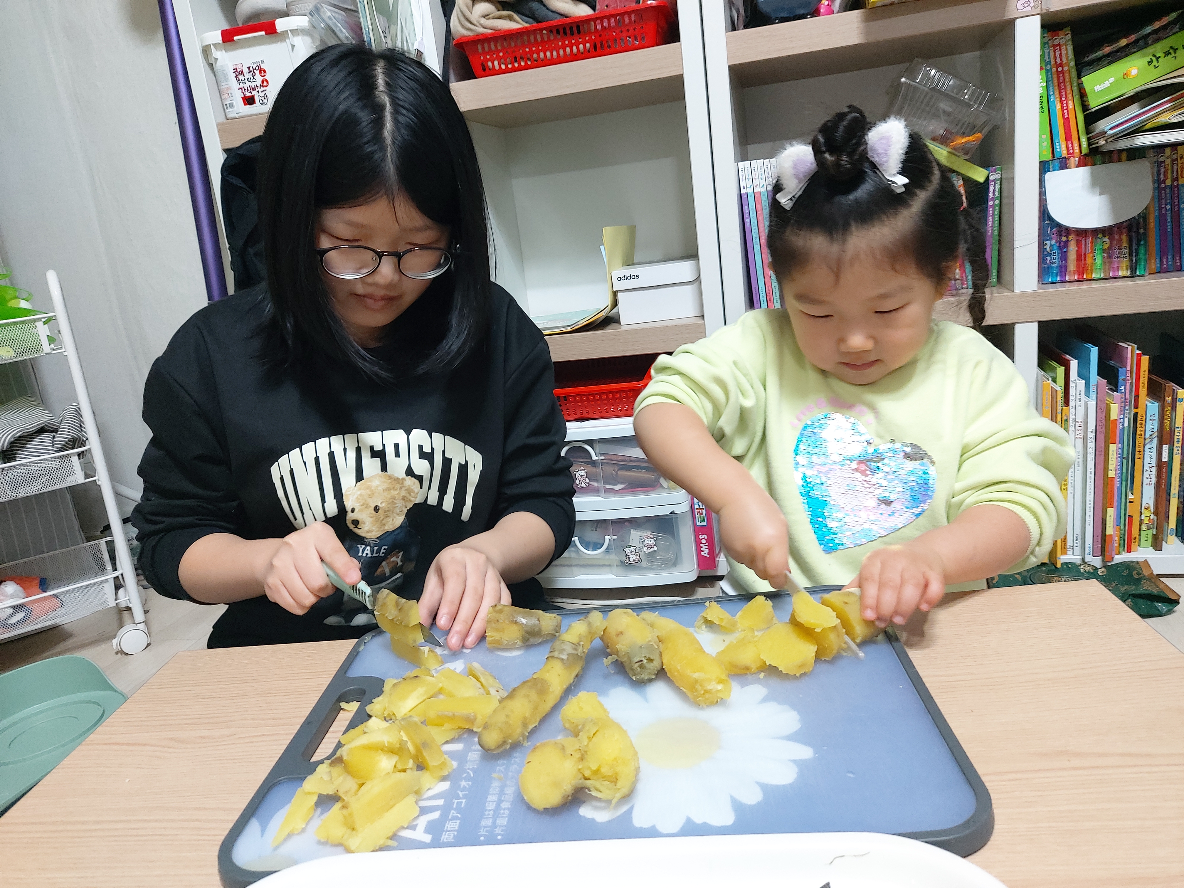 아이와 함께만들면 더더 맛있어요.^^ 찐고구마 잘라서 에어프라이어에 돌리면 완성입니다~