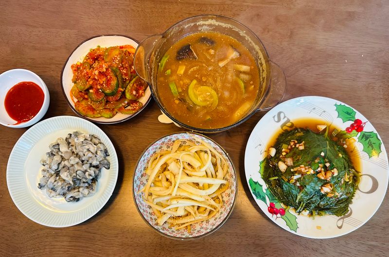 하두 주말 내내 고기앞에 있어서 채소로 저녁을 먹으려고 차려봤어요 사실 도라지볶음도 깻잎찜도 태어나 처음 해봤어요 ㅋㅋㅋ