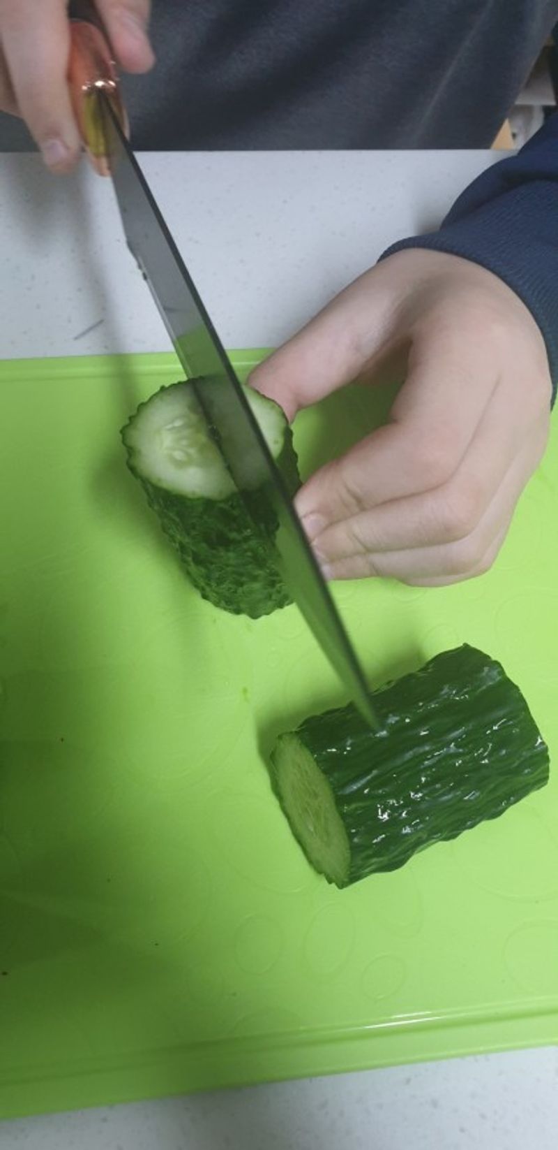 처음에는 서툴러서 오이를 계속 부서버렷는데.. 몇개하더니.. 능숙하게..저보다 잘하더라구요~