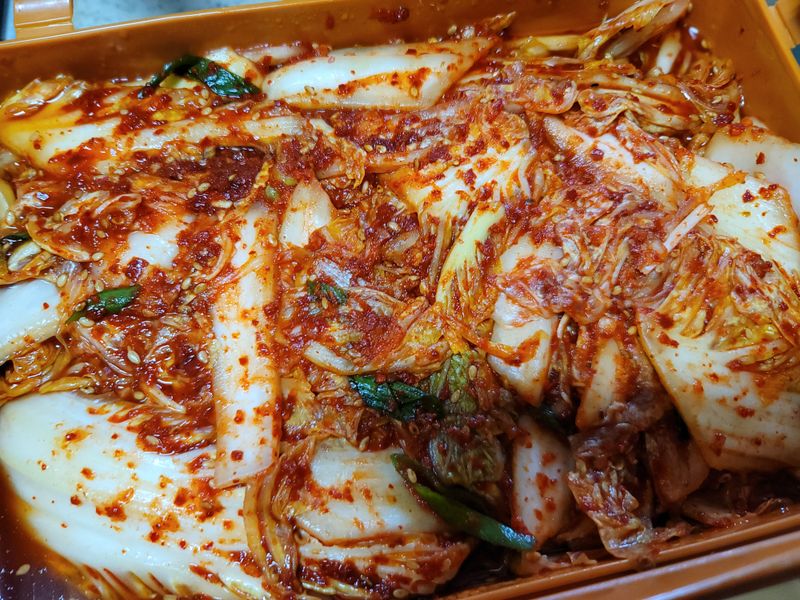 그냥 먹어도 맛있는 고구마,,, 겉절이랑 같이 먹으면 2배,3배,4배,,, 맛나쥬~~ 매콤함 필수~ 아삭아삭 식감은 두말하면 잔소리여요~ 고구마군, 겉절이양~ 겨울밤을 부탁해~~♡