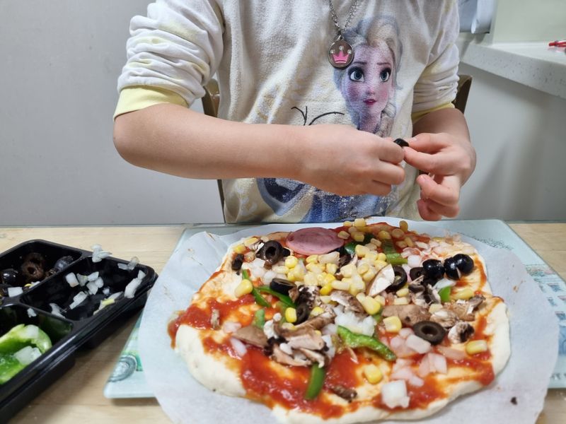 야채를 싫어하지만 피자를 좋아하는 딸과 만든 피자입니다.