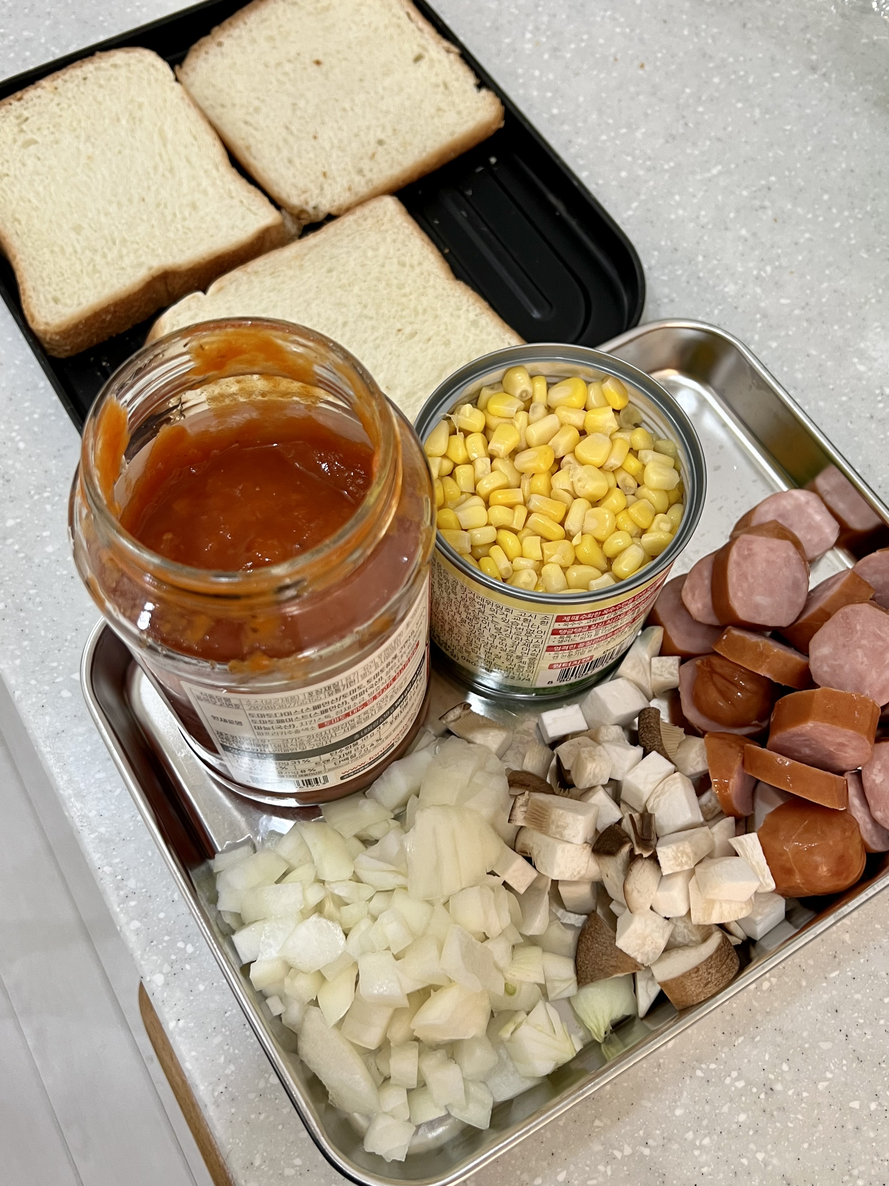 식빵에 햄이랑 옥수수 치즈 넣고~~