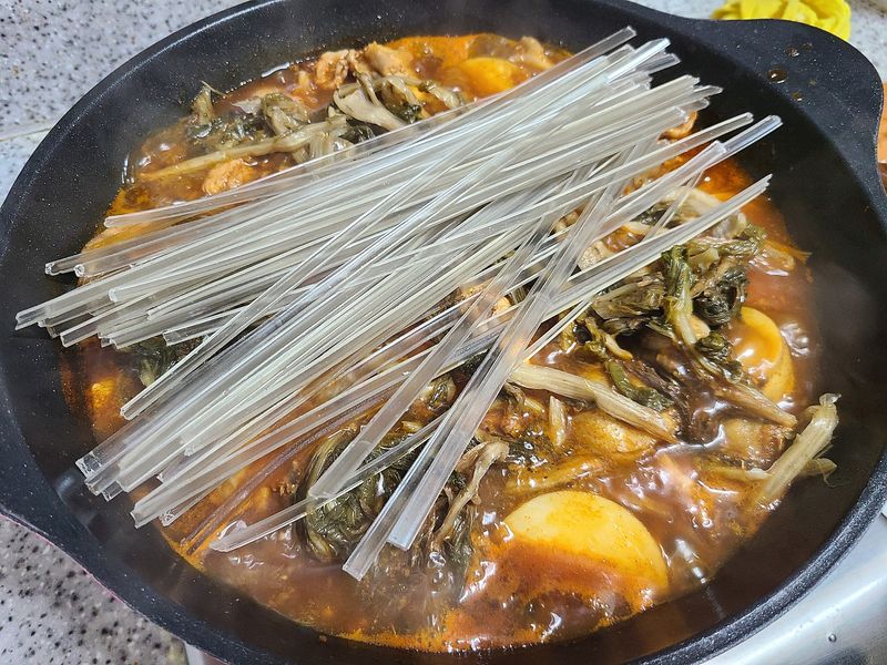 시래기 넣은 찜닭~~ 아이디어 굿이에요~~납작당면도 듬뿍~~ 저도 한번 해볼게요~^^