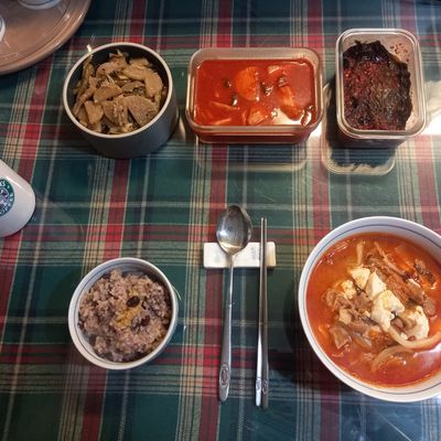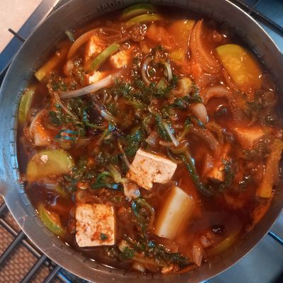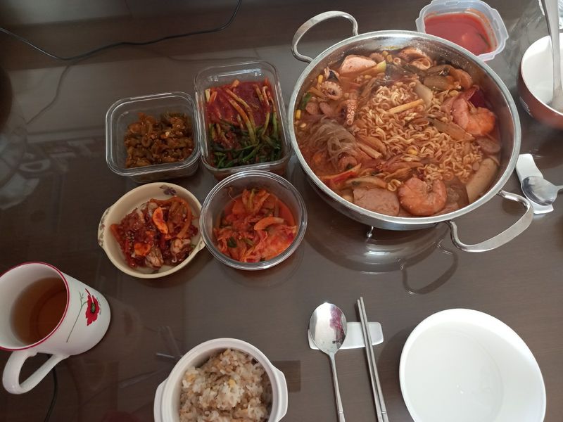 각종해물과 야채와 당면 넣어 만든 해물전골. 겨울 온가족 둘러 앉아 먹으면 행복 그자체. 라면 사리 꼭 넣어야해요.
