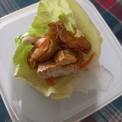 좋아하는 채소와 훈제오리 볶아 밥 위에 톡!
