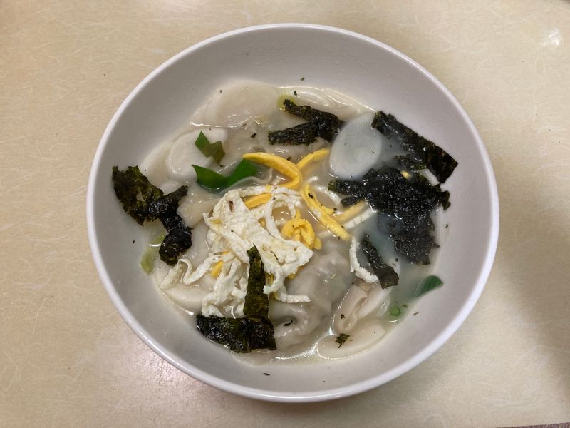 사골국물에 떡이랑 만두 넣고 달걀지단과 대파, 김가루로 간단하게 만들어 먹어서 좋았어요.