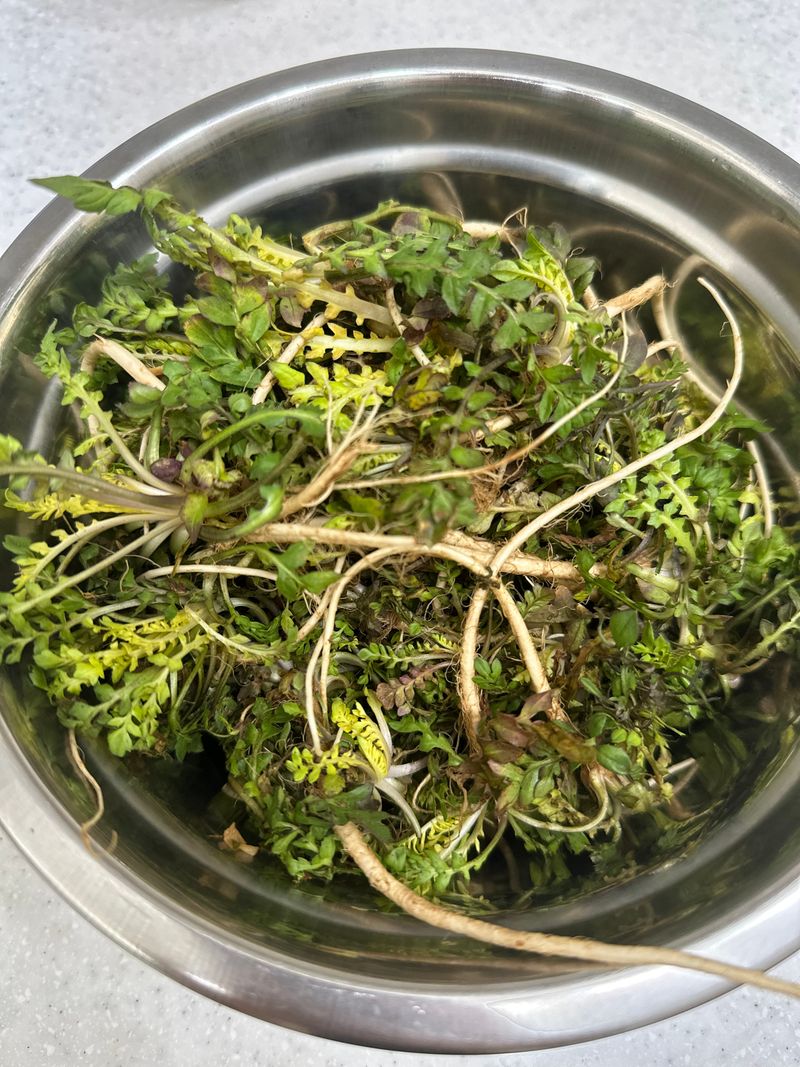 냉이 뿌리는 데치면 단맛을 잘 느낄 수 있는데